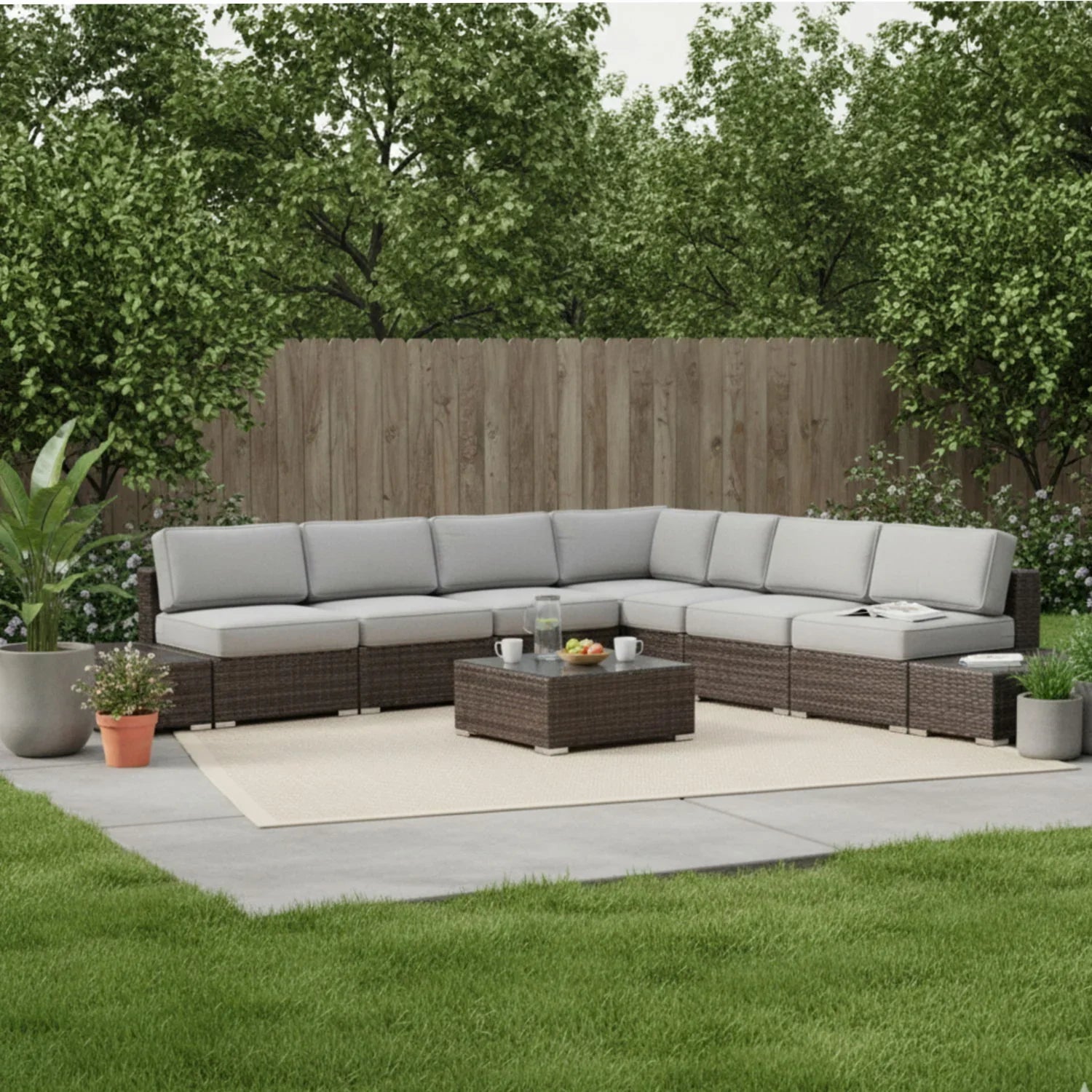 Outdoor 8 Person Wicker Seating Set With Cushions - Grey Mix