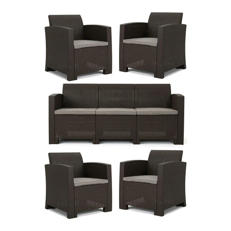 Sale price $489 Regular price $689Unit price /UnavailableVelvora - Outdoor Wicker Set With 3 Seater Sofa, 2 Club Chairs, Coffee Table And Cushions - Brown