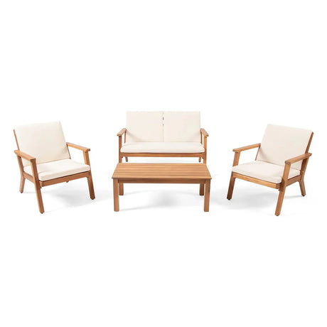 Alluvion - 4 Piece Wood Outdoor Patio Conversation Set With Cream Cushions - Teak / Beige