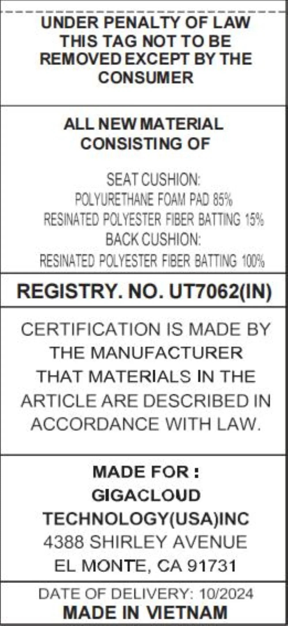 - Origin: Made in Viet Nam.