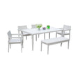 6 Piece Dining Set Modern Outdoor Patio Furniture, 4 Dining Chairs & 1 Dining Bench Sunbrella Fabric And 2 Tone Rectangle Table With Umbrella Hole - Matte White / Grayish