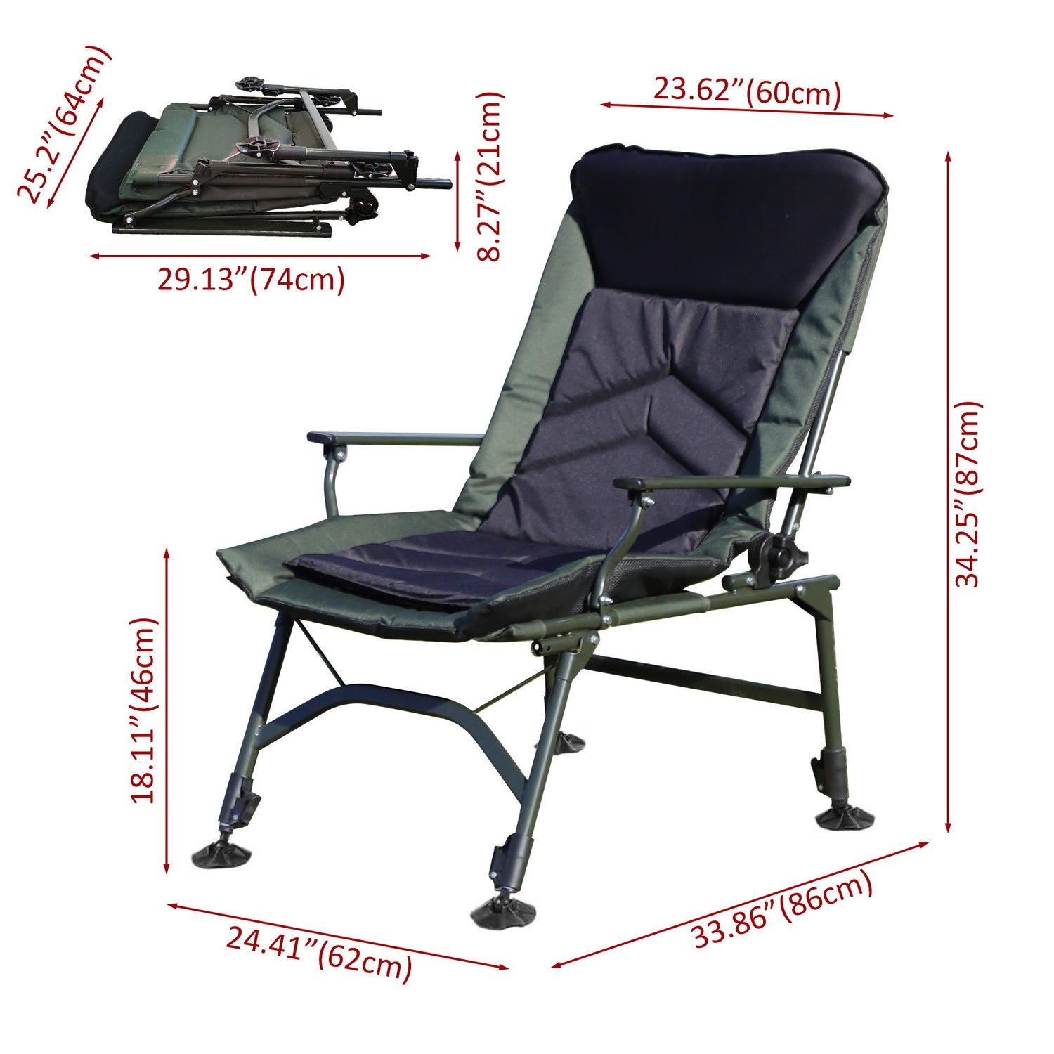 Camping Lounge Chair, Portable Folding Reclining Camping With Adjustable Backrest For Indoor And Outdoor Camping Beach Hiking Fishing - Green / Black