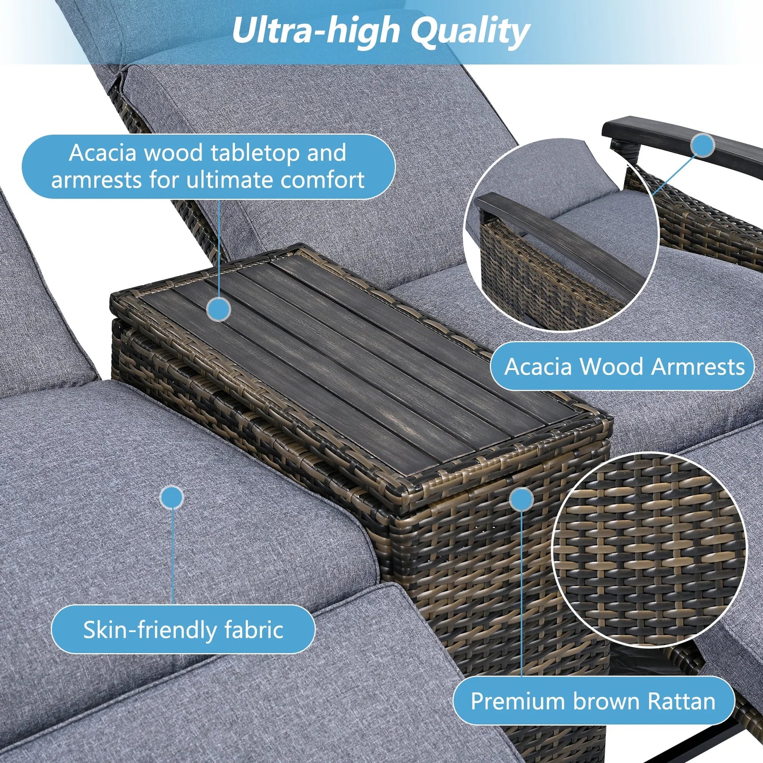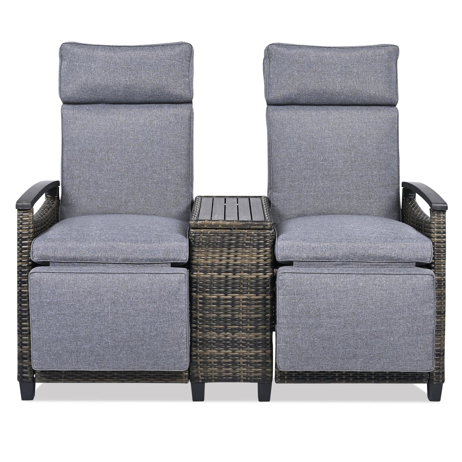 Use it as a conversation seat by the garden or a twin chaise for late-afternoon reading. The set’s gray polyester cushions and textured wicker base create subtle contrast while the integrated center console keeps drinks and small plates within reach. Built from weather-resistant frame materials and topped with removable cushions, this patio set is designed for easy, comfortable outdoor use season after season.