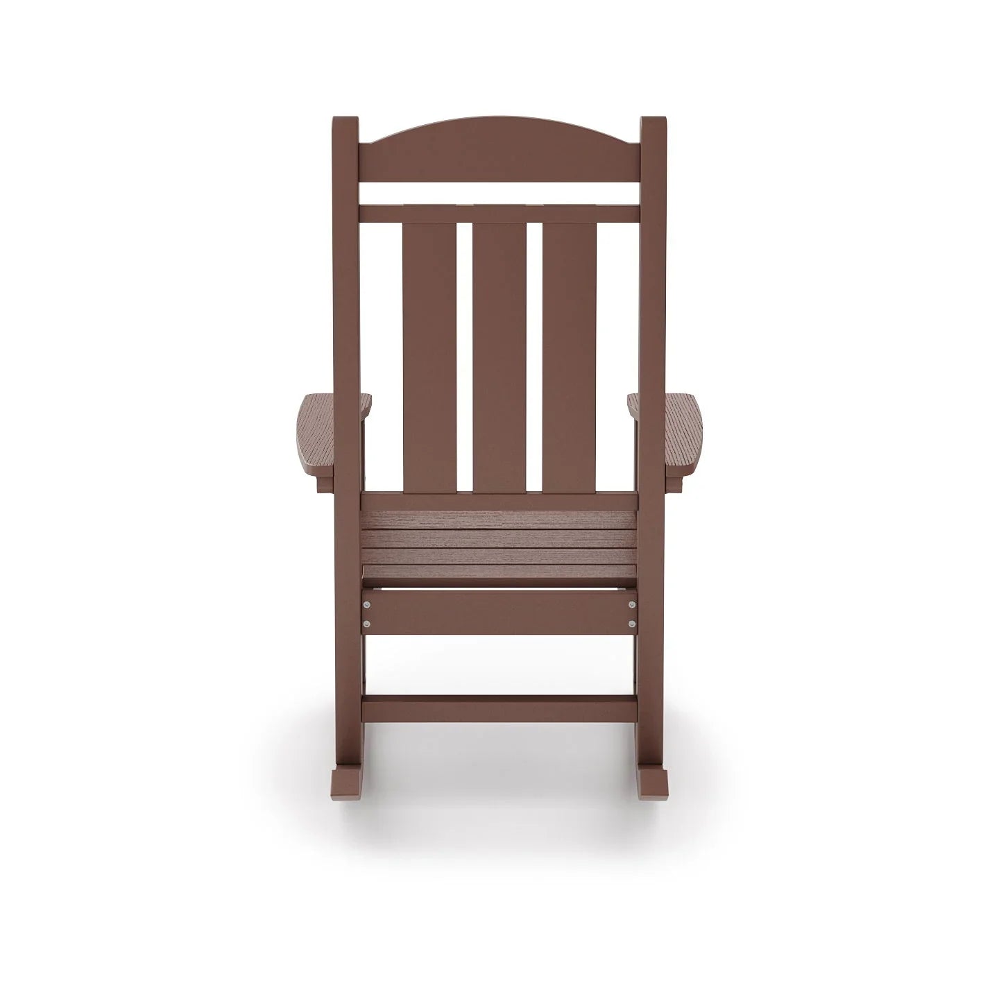 Pecan Traditional Porch Rocker Classic HDPE Poly Lumber For Porch, Patio, And Garden Comfort - Brown