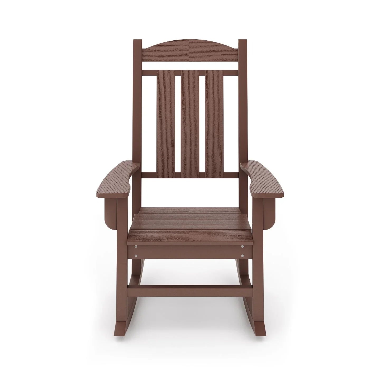 - Durable Materials: Constructed with high-density polyethylene (HDPE) poly lumber, this rocker is designed to withstand the elements, ensuring long-lasting durability and minimal maintenance.