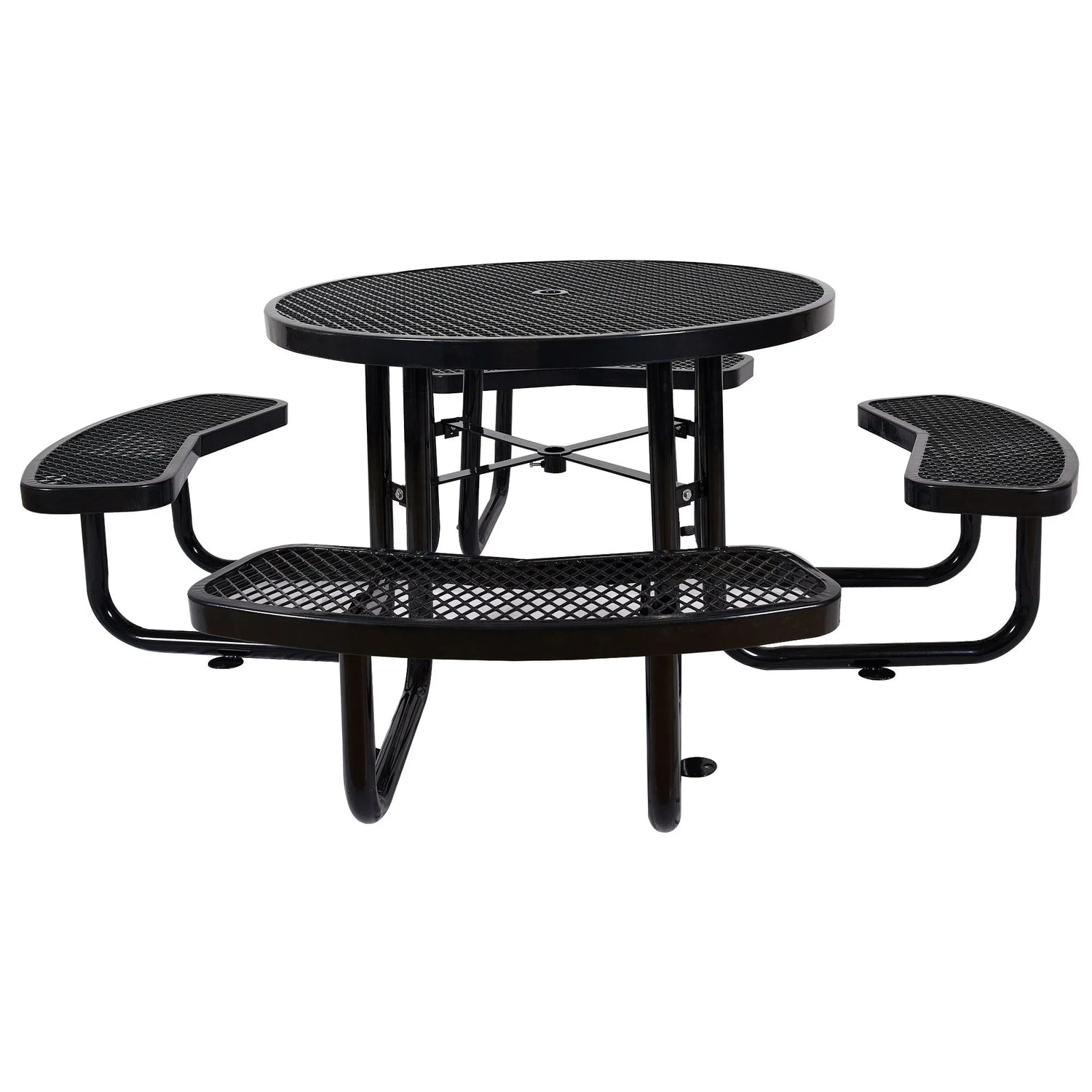 Round Outdoor Steel Picnic Table, With Umbrella Pole - Black