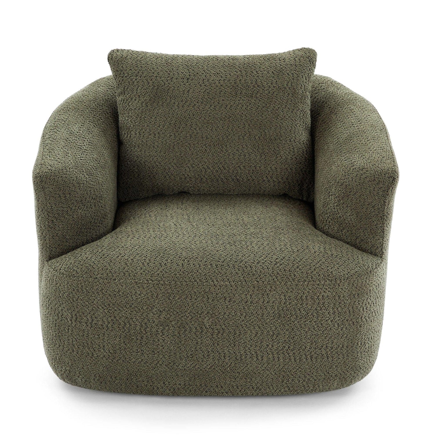 Designed for modern living rooms, cozy reading nooks, or a stylish home office, this 360° Swivel Barrel Sofa Chair with Throw Pillow brings rounded, contemporary form and true everyday comfort to compact and mid-size spaces. The barrel silhouette and integrated armrests cradle the body while the full-rotation base makes it effortless to join conversations, reach a side table, or follow the TV without standing up.
