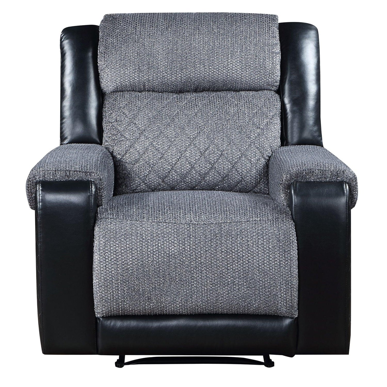 The Alicia Grey/Black Recliner is designed for anyone who wants a supportive, no-fuss seating option in a living room, den, or media space. With plush, quilted cushioning and a two‑tone dark grey fabric seat framed by black leather‑look arm panels, it blends casual comfort with a subtle contemporary edge—ideal for relaxing, reading, or watching a movie.