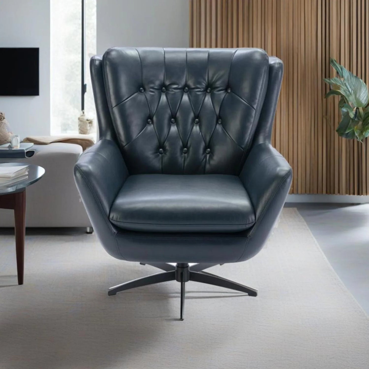 Calvin - Tufted Swivel Chair With 360 Degree Swivel Metal Base - Blue