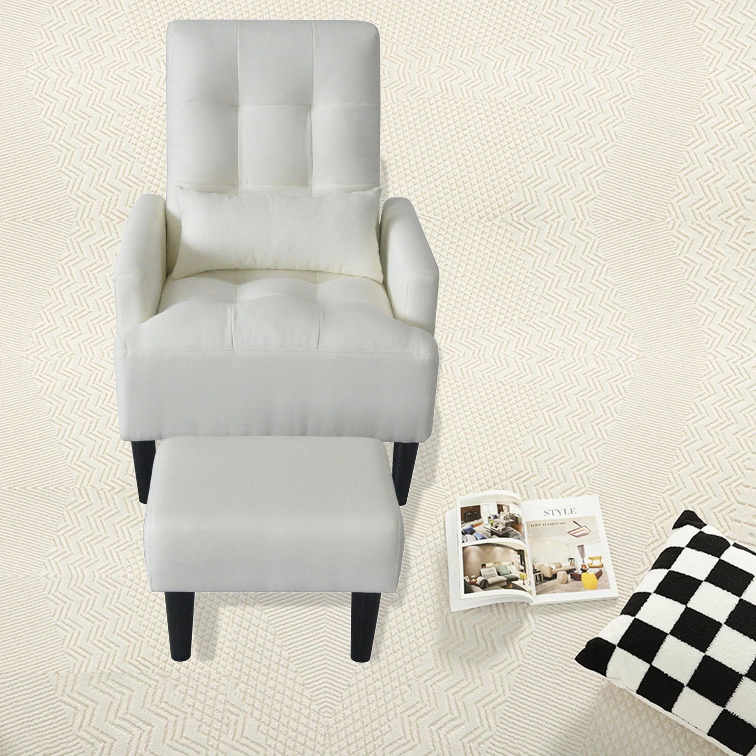 Recliner Soft Cozy Sofa Chair With Ottoman - Cream White