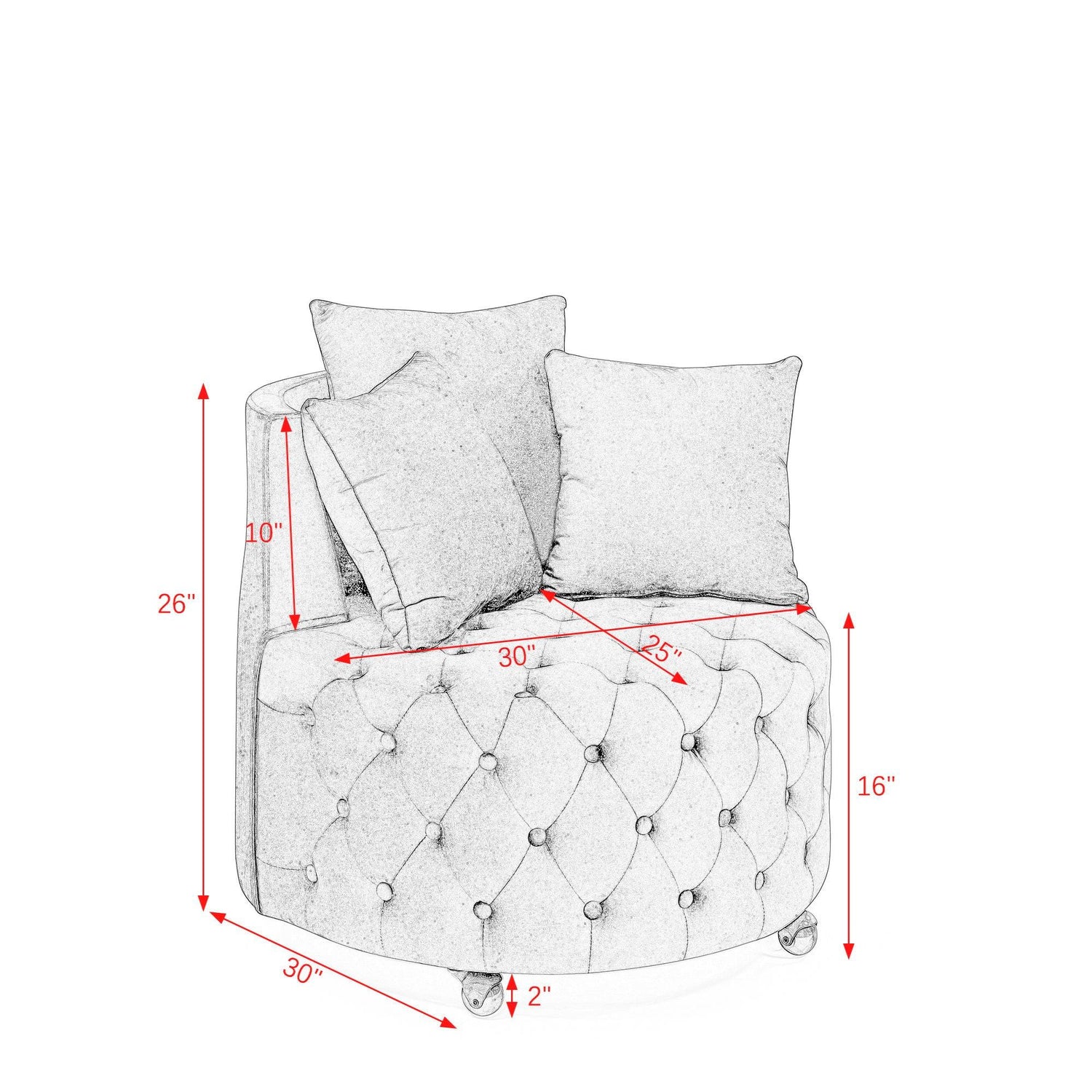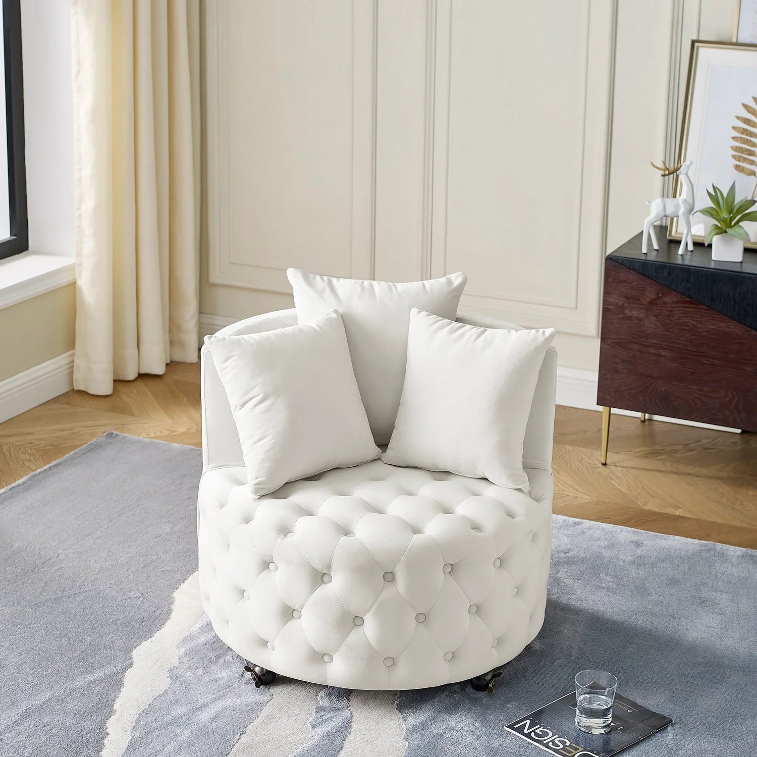 Modern Upholstered Swivel Chair With Button Tufted Design And Movable Wheels