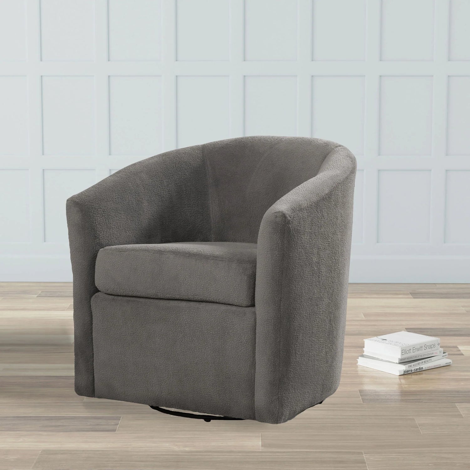 Oaklynn - Barrel Style Swivel Accent Chair In Performance Fabric - Ash Brown