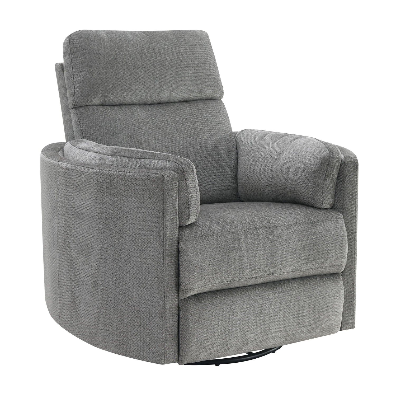 Sagen - Chenille Glider Recliner With Swivel - Gray is backordered and will ship as soon as it is back in stock.