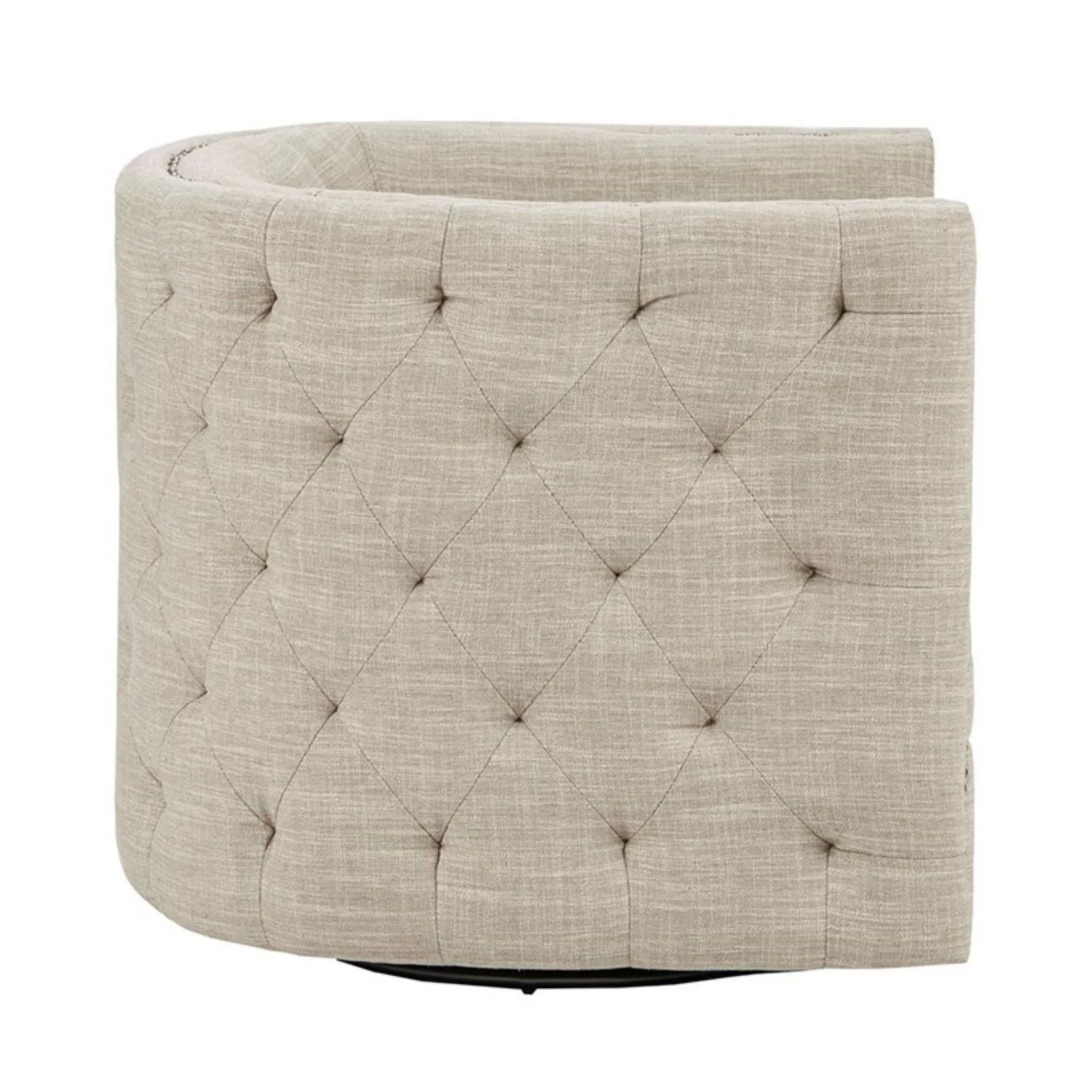 Swivel Chair With Tufted Barrel Design And Nailhead Accents - Cream