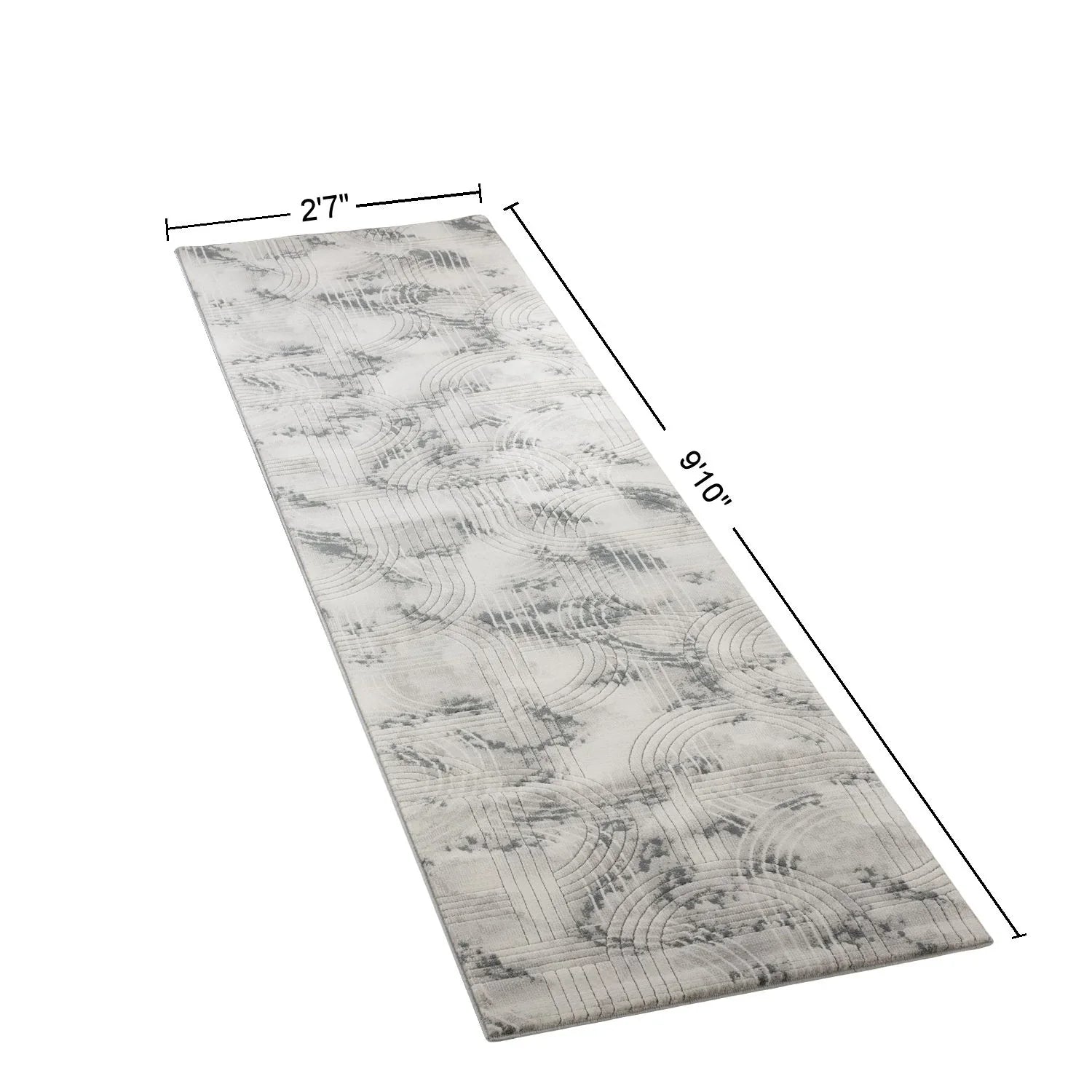 Geometrix - 2'7" X 9'10" Area Rug Runner, Geometric 3D Effect - Ivory / Gray