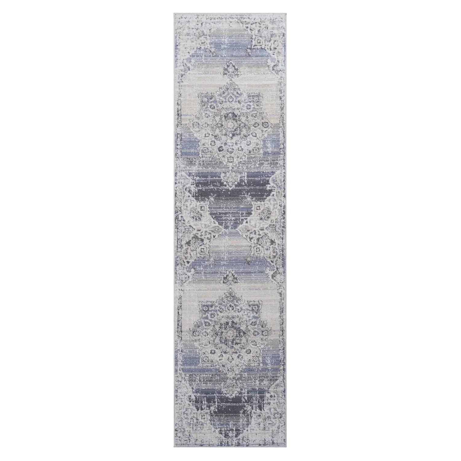 Payas - 2' X 8' Medallion Runner Rug - Cream / Blue