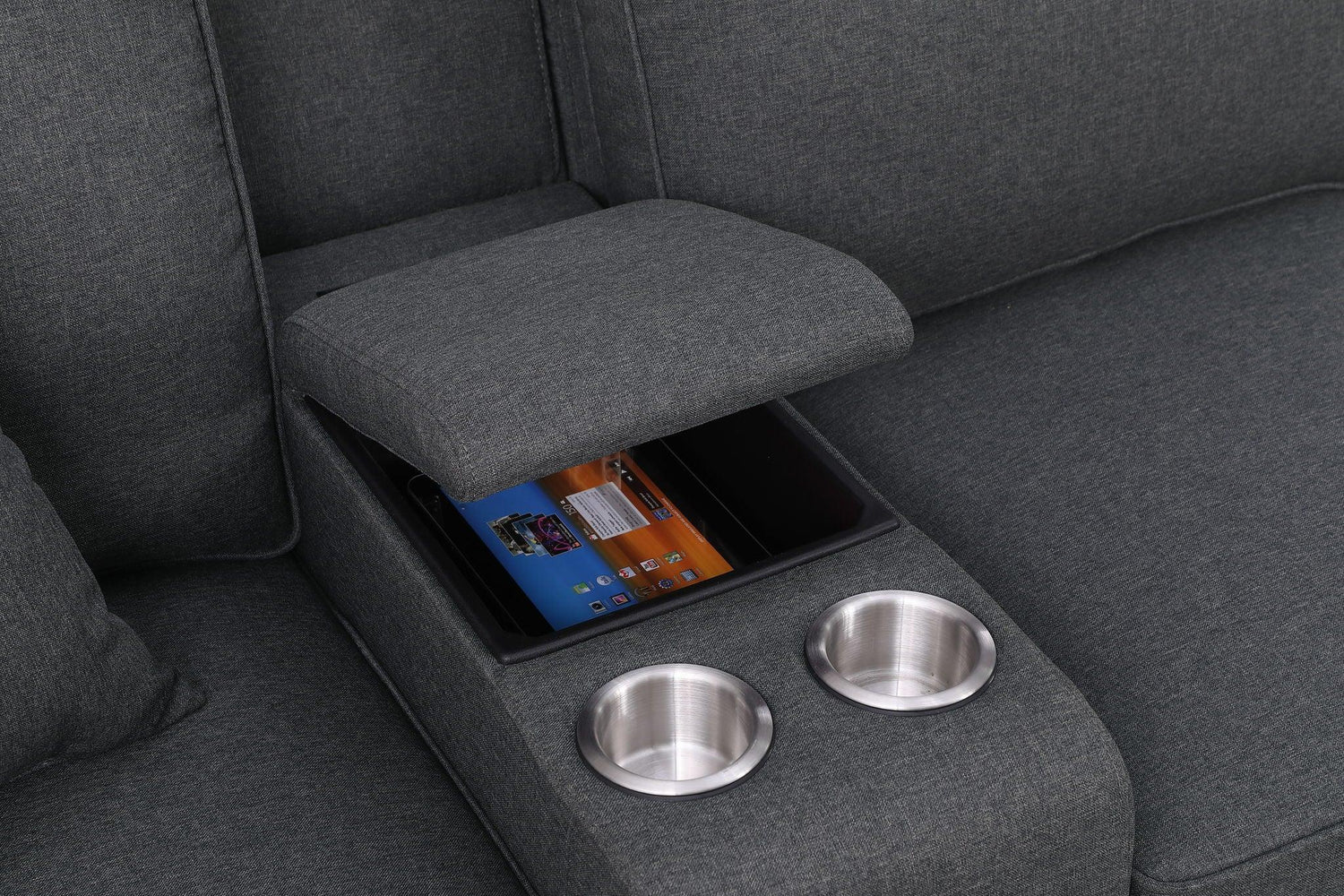 Configuration: 9-piece sectional with separate ottoman and integrated cupholder console with USB port.