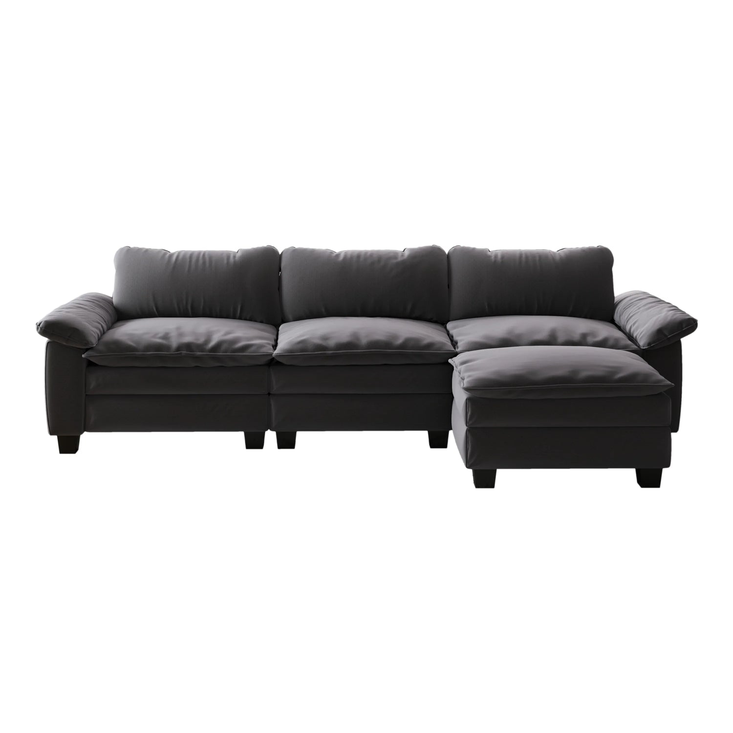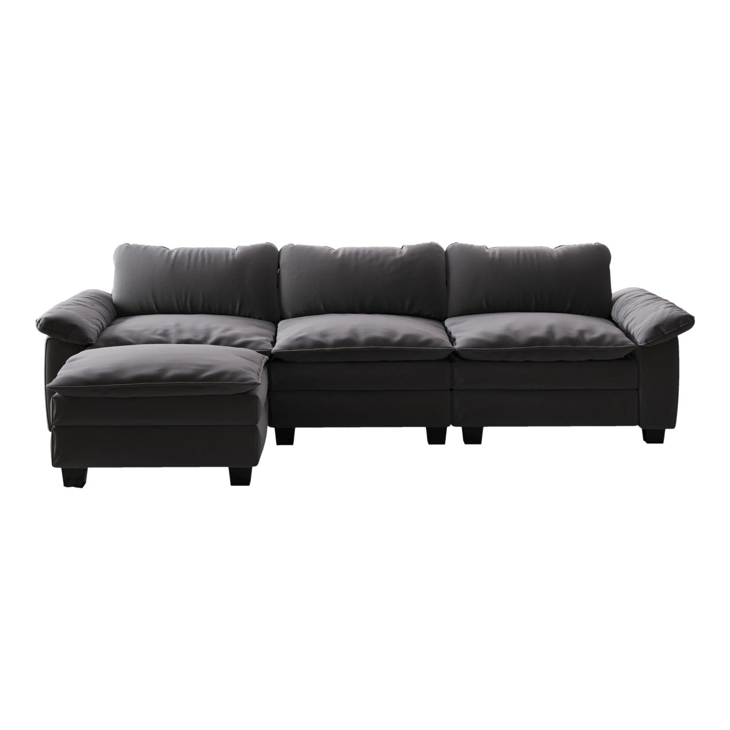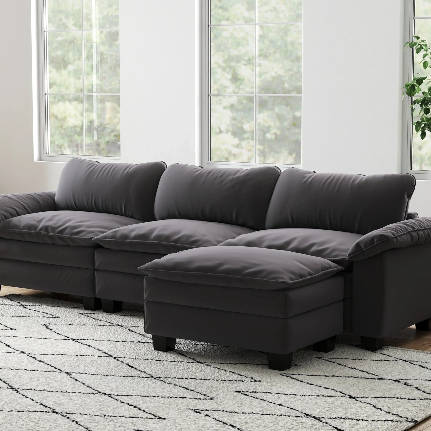 - Flexible layout: sectional pieces connect with a metal plate while the ottoman is freestanding for quick reconfiguration.