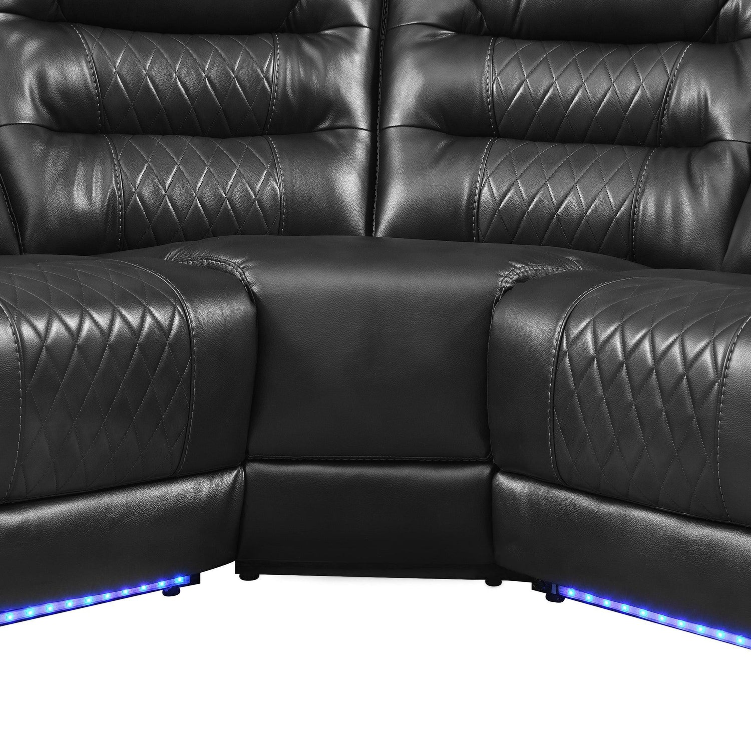 Sectional Sofa Manual Reclining With LED Light Strips Black