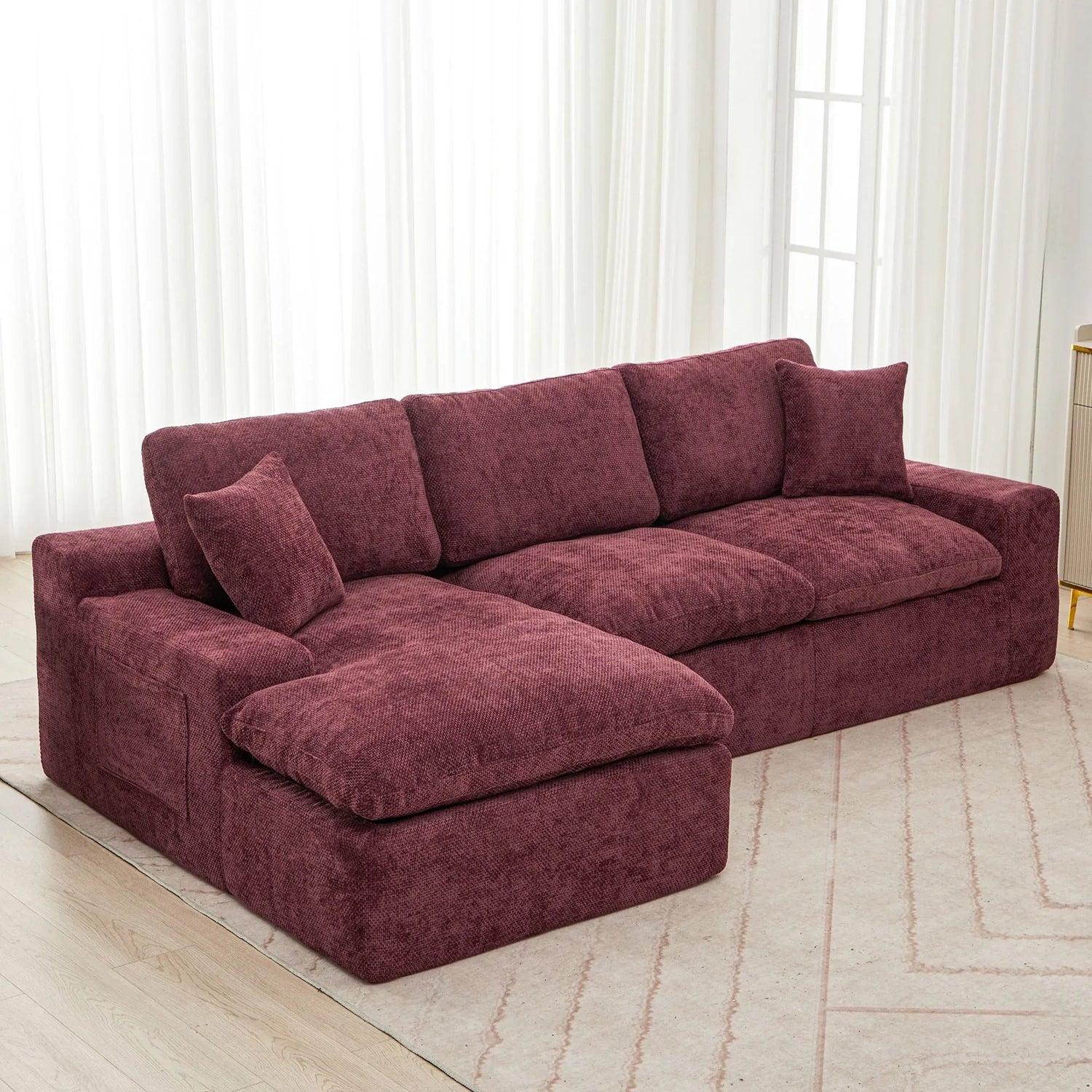 Cloud Sectional Sofa Upholstered Sofa Couch With Double-Layer Cushion And Side Pockets - Red