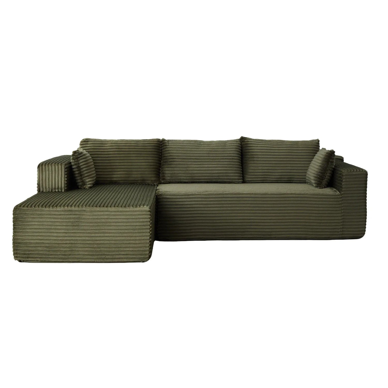 Compression Sectional Couch With Comfy Chaise, Boneless L Shape Sofa With Deep Seat, Minimalist Modular Couches Sleeper - Green