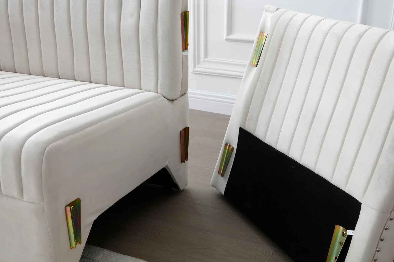 Contemporary Vertical Channel Tufted Velvet Sectional Sofa For Living Room With 4 Pillows - Beige is backordered and will ship as soon as it is back in stock.