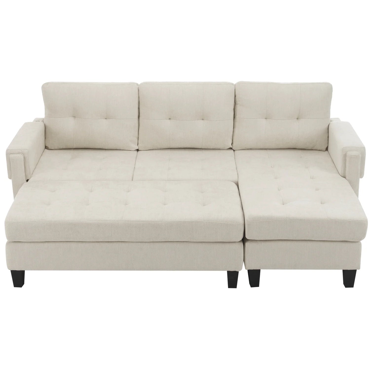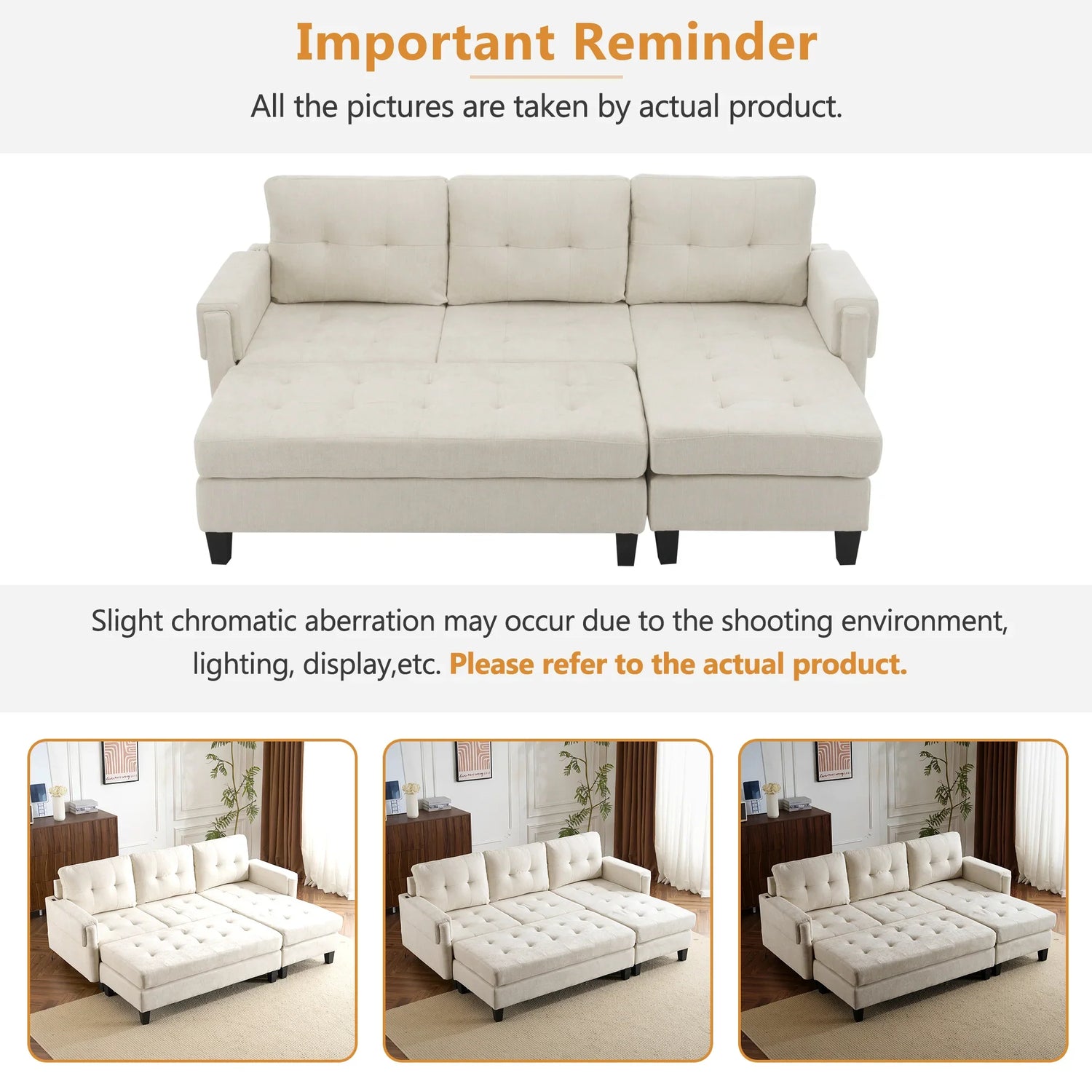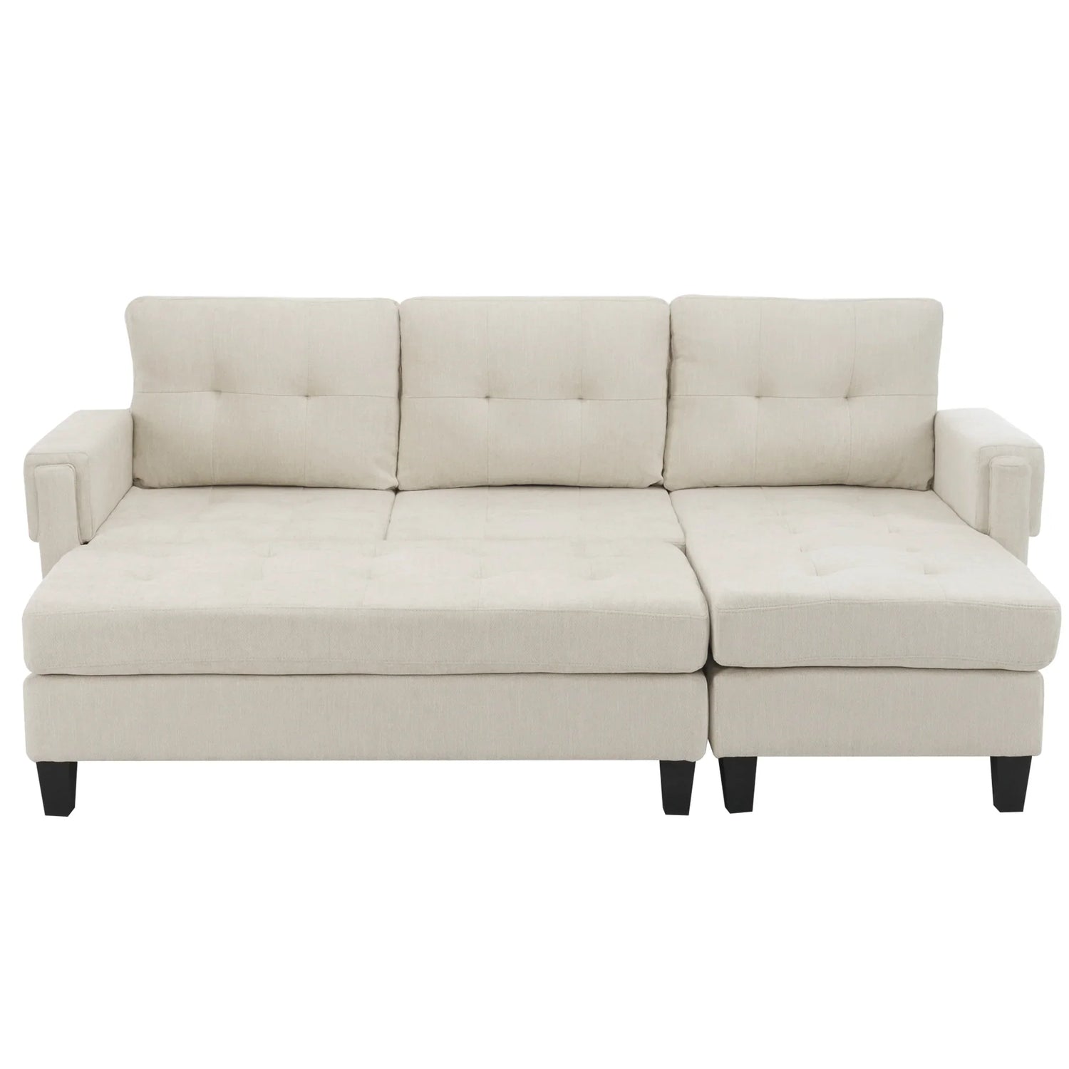 Designed for living rooms, family rooms, and guest-ready apartments, this L-shaped sleeper sectional in beige chenille brings relaxed comfort with a clean, contemporary profile. It’s ideal for households that need a versatile sofa that seats up to five, doubles as a chaise for lounging, and converts into a sleeper for occasional overnight guests. The tufted seat and back cushions and squared arms give a modern yet approachable look that pairs easily with warm woods and natural textures.