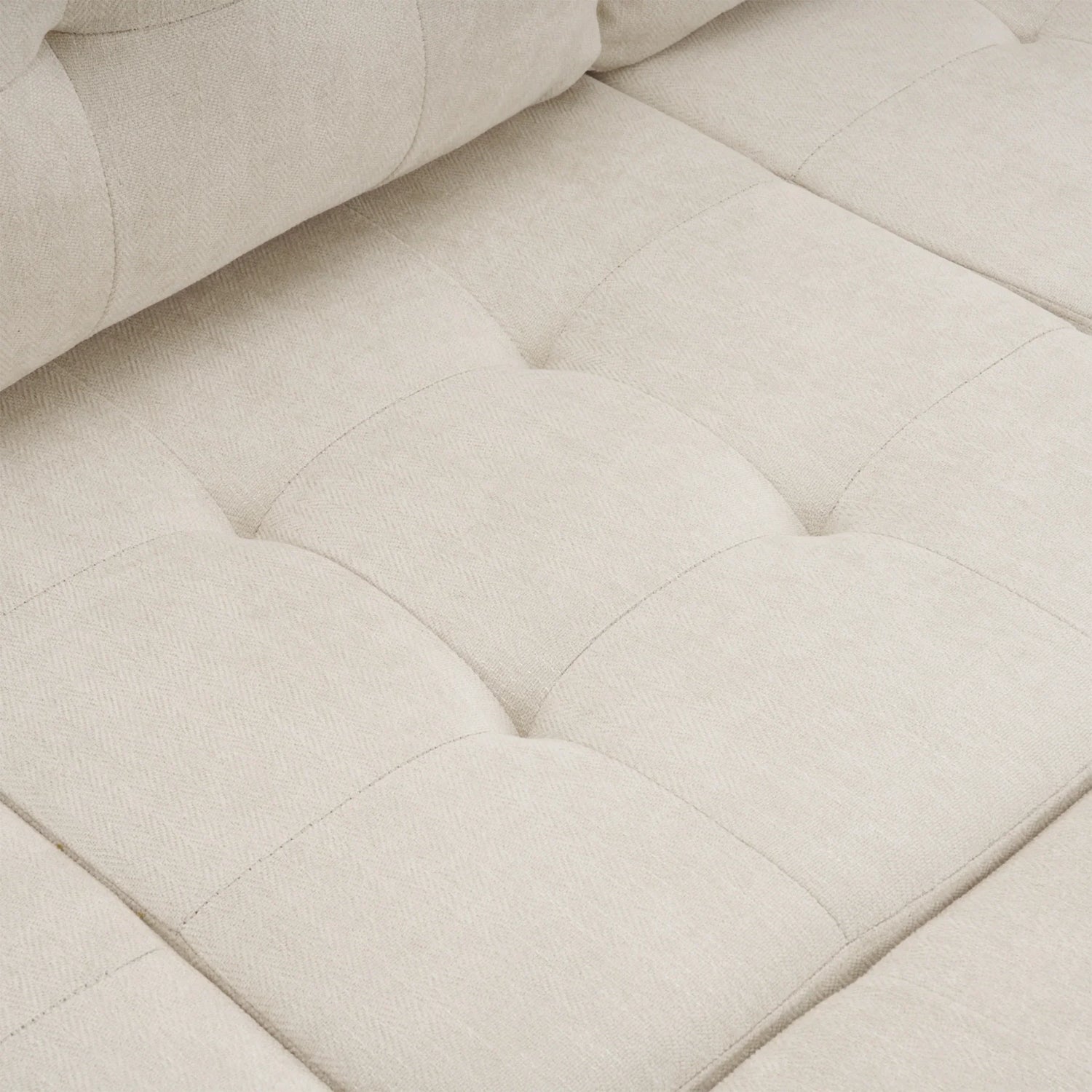 - Modern, neutral aesthetic: clean lines and tufted cushion details make it easy to style with a variety of decor.