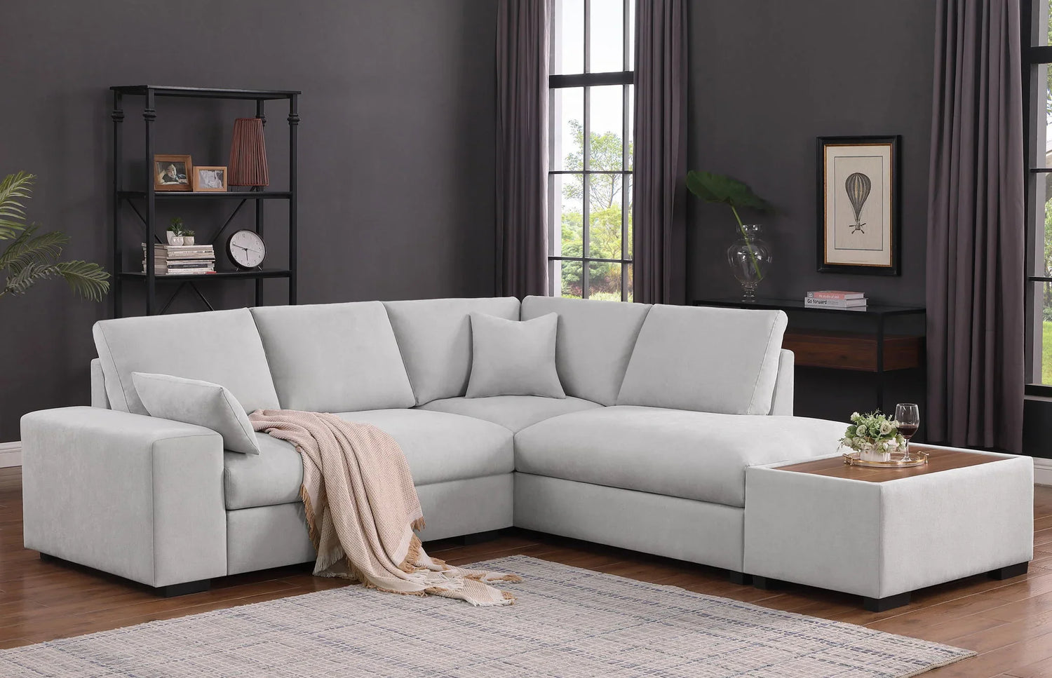 Joshua - Woven Fabric Sectional Sofa With Right Facing Chaise and Console Ottoman - Light Gray