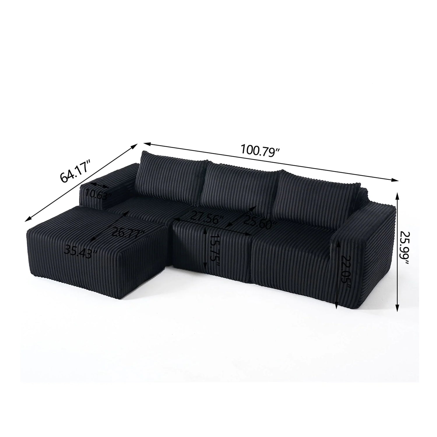 100.79"W x 64.17"D x 25.99"H - 108.03 lb
