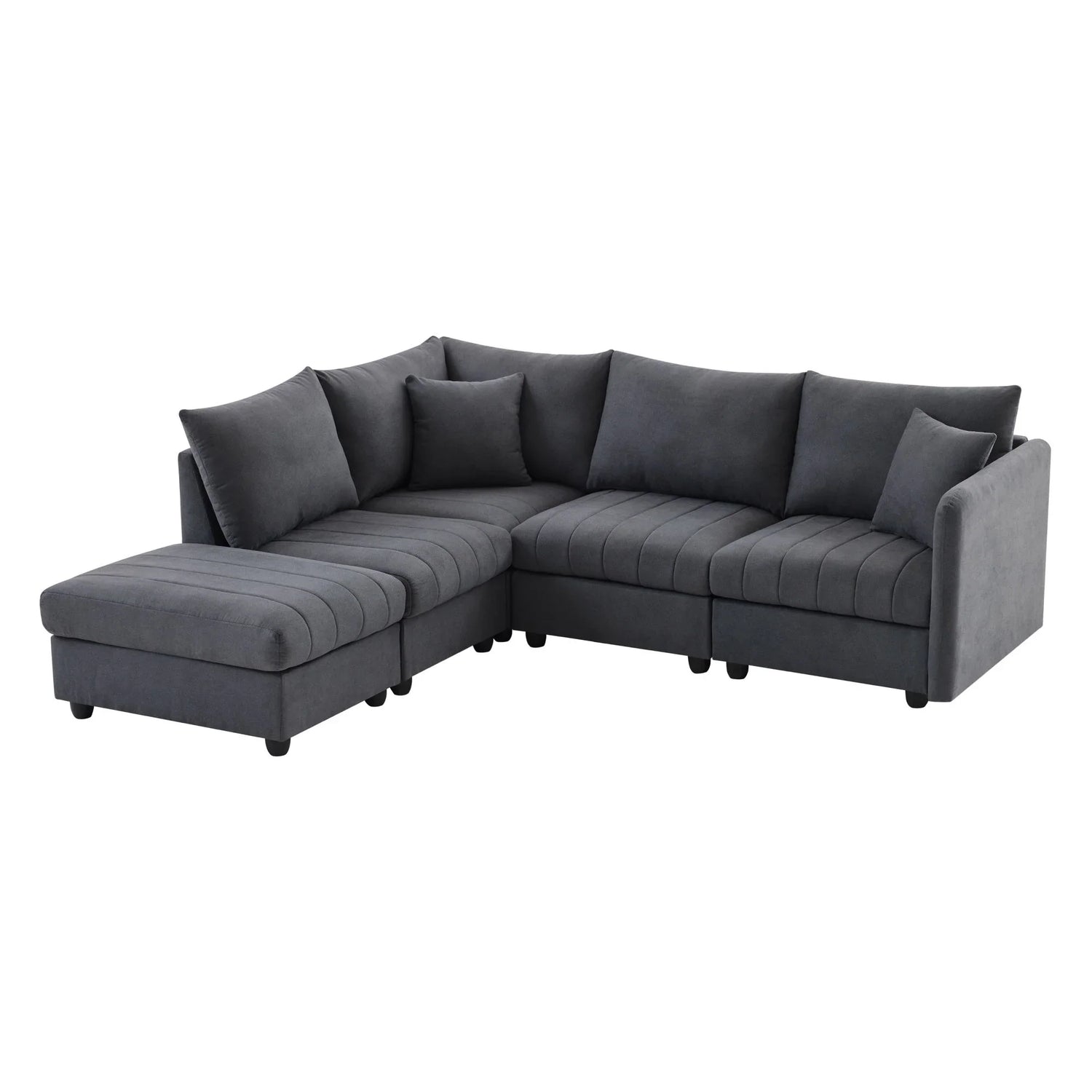 Modern Sectional Sofa With Vertical Stripes, 2 Pillows, 5 Seat Couch With Convertible Ottoman, Various Combinations, L-Shape Indoor Furniture - Dark Gray