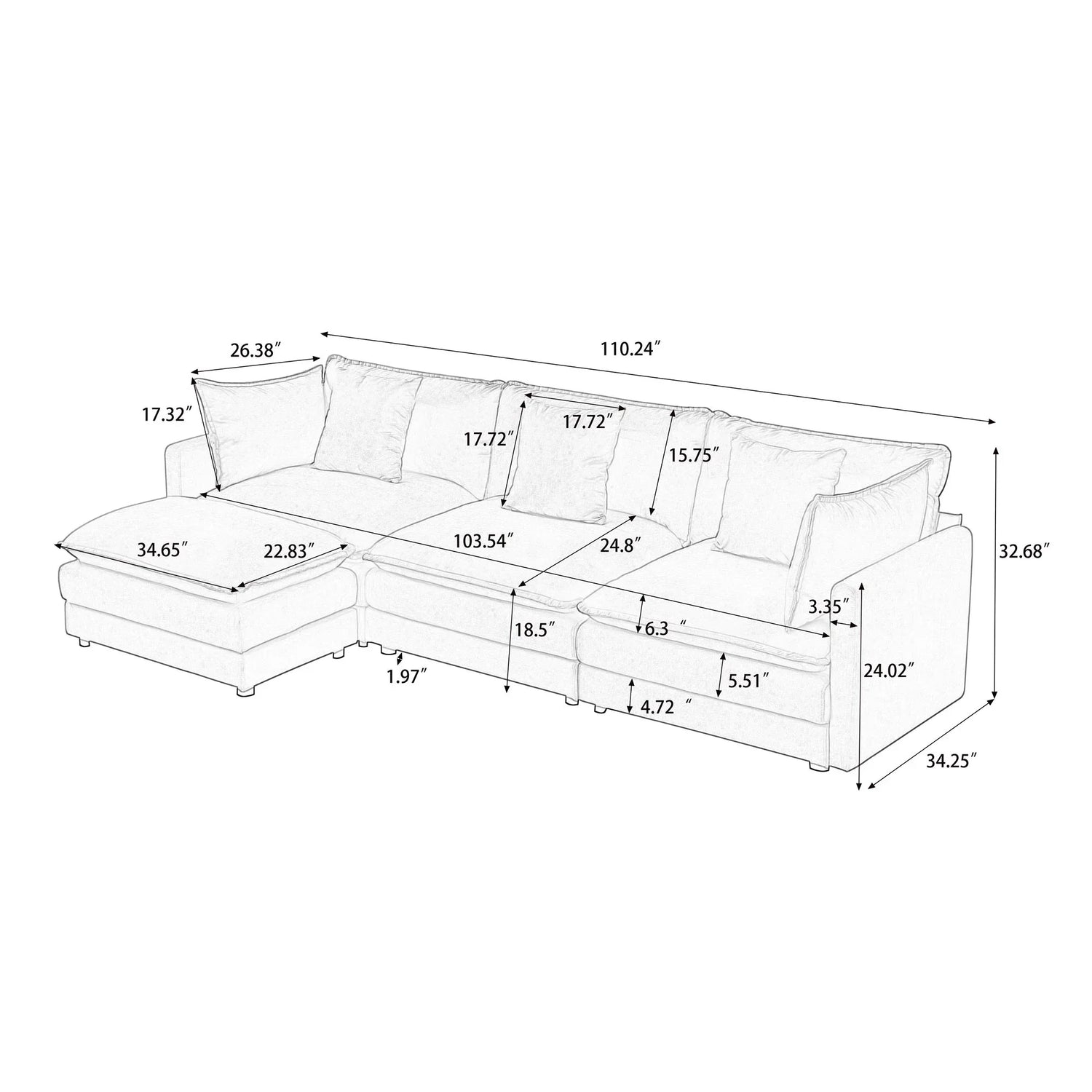 Modular Comfortable Cloud Sofa Ottoman Style Combination Chenille Sofa With Deep Seat Cushions - White