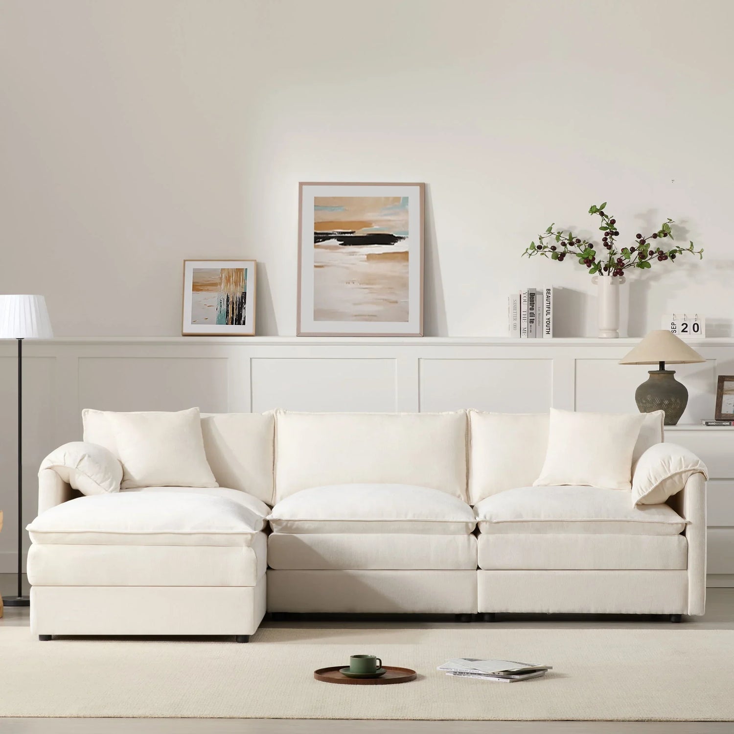 Modular Sectional With Deep And Wide Seat, L Shaped Cloud Couch Set With Double Cushions 4 Seat Sofa With Movable Ottoman Oversized - Cream