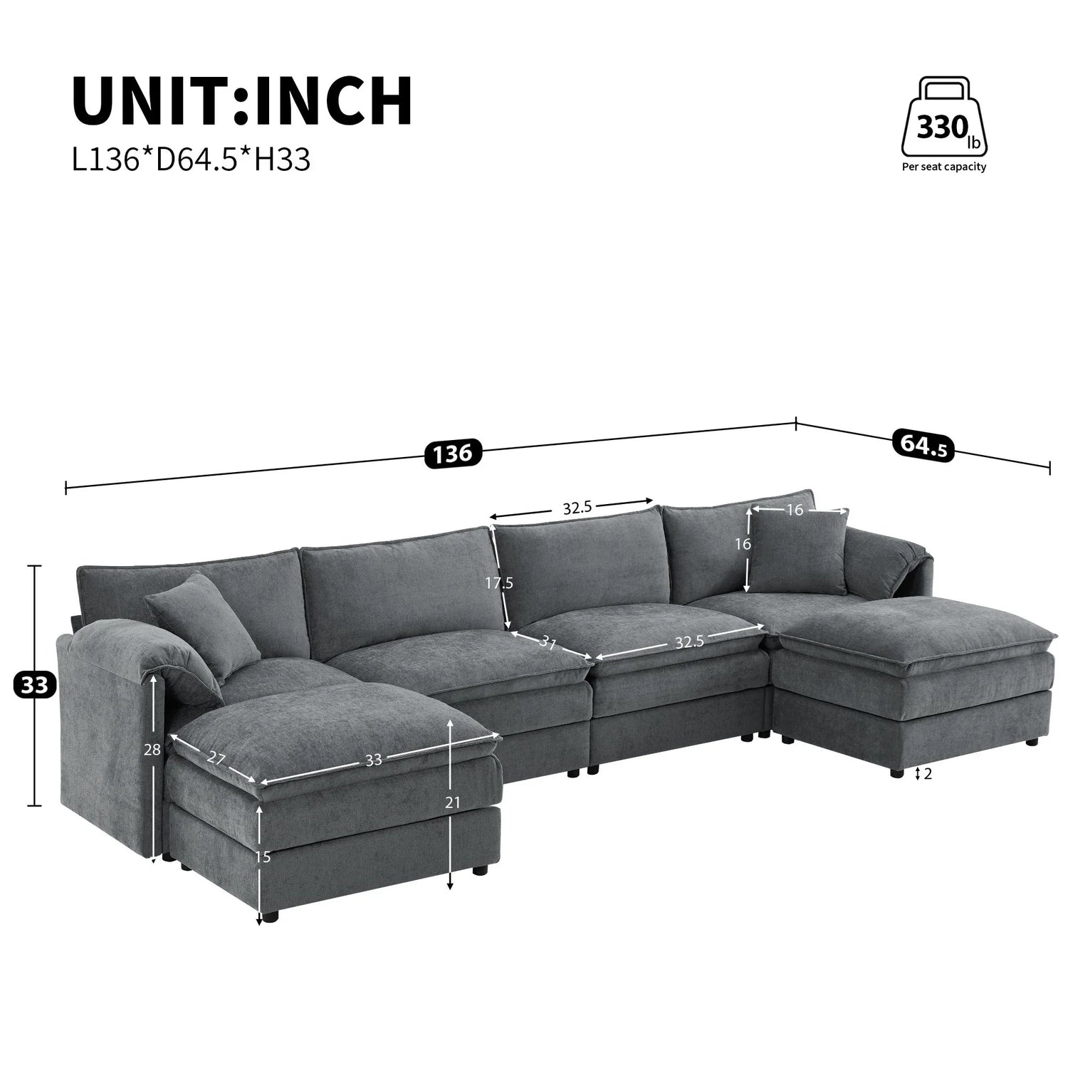Modular Sectional With Deep And Wide Seat, Cloud Couch Set With Double Cushions Sofa With Movable Ottoman