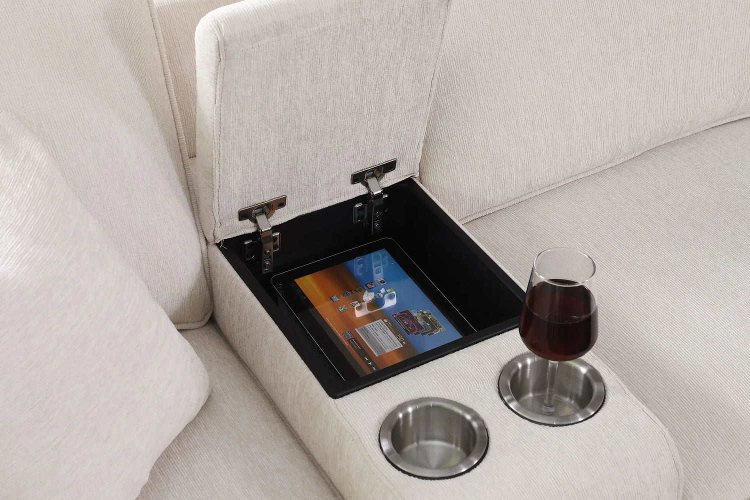 - Features: Center cupholder console with integrated USB port; removable back cushions for easier cleaning and re‑arrangement; armless chairs can be re-positioned within the composition for layout flexibility.