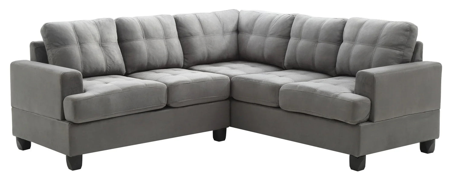 The Sandridge sectional is built for everyday living in modern transitional homes — ideal for couples, small families, or anyone furnishing a living room, den, or apartment lounge. Upholstered in soft micro-suede, it reads cozy and tailored at once: plush, tufted cushions invite lounging while a clean, low-profile frame keeps the look contemporary and adaptable to a range of décor styles.