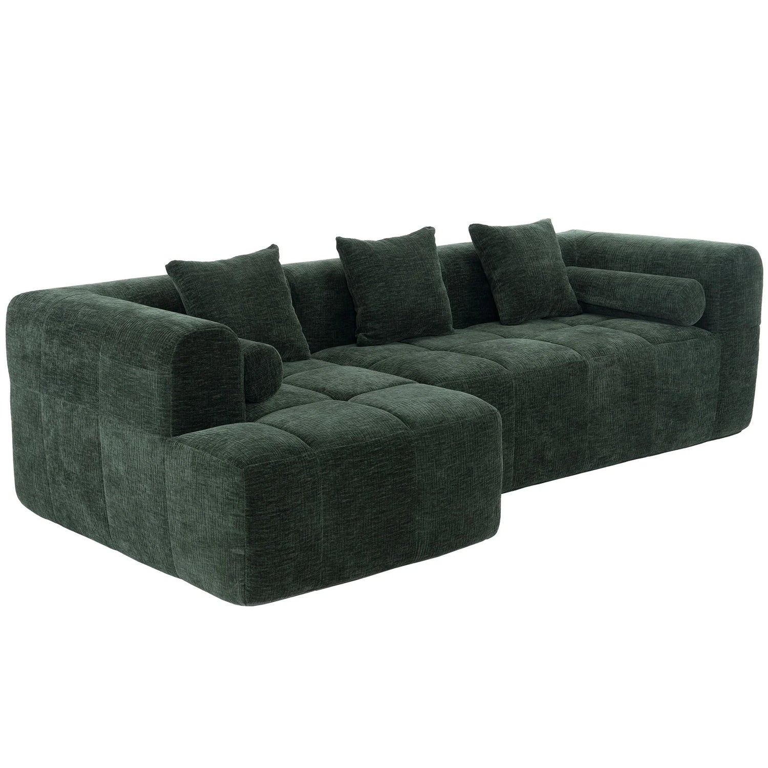Sectional Sofa Full Compressed Sofa Modular Sofa Couch Free Combined Sofa With Deep Seating And 2 Side Pockets For Living Room - Green
