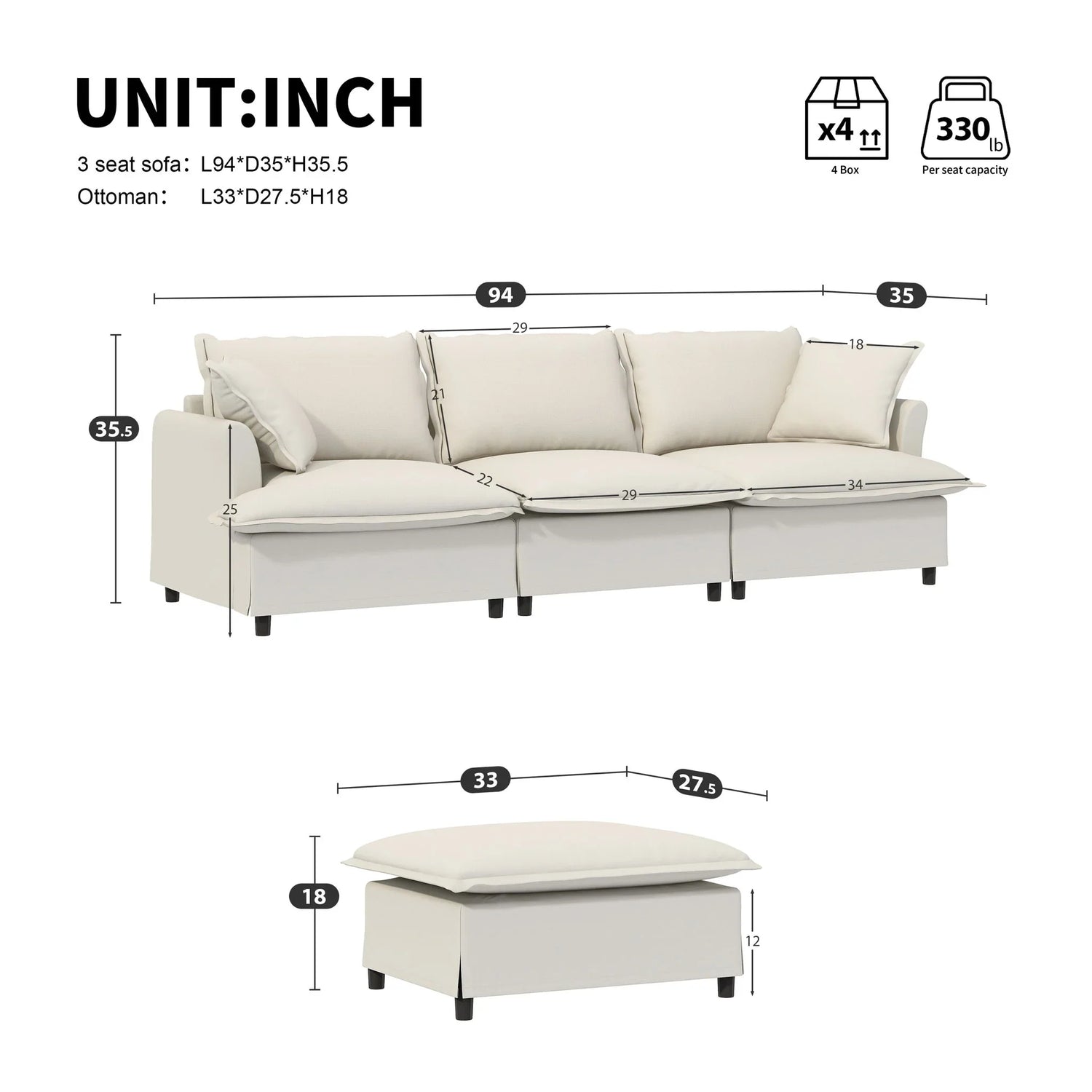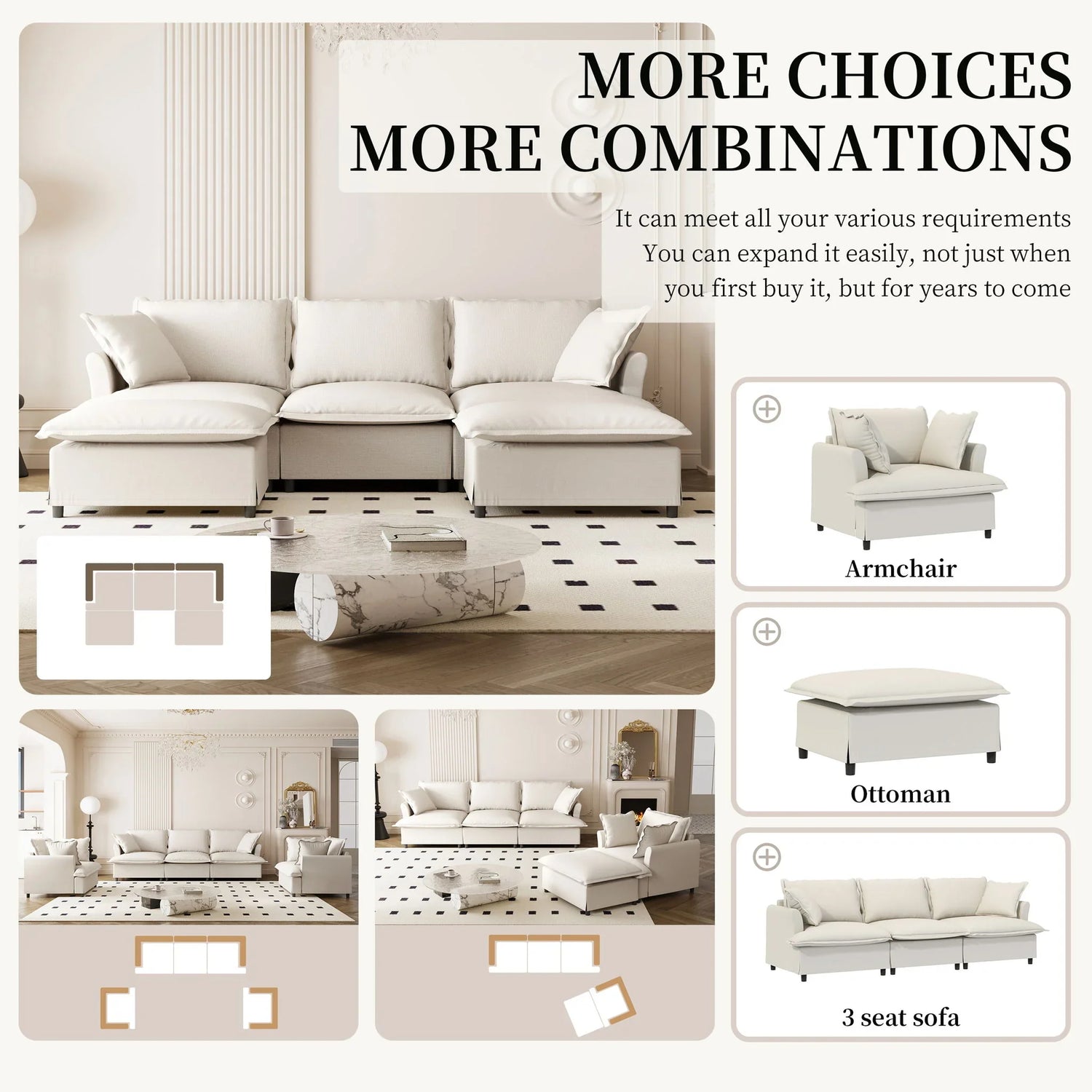 Sectional Sofa With Ottoman Cloud Couch Set With Throw Pillows, Free Combination - Beige / 3 Seater Sectional Sofa With Ottoman is backordered and will ship as soon as it is back in stock.