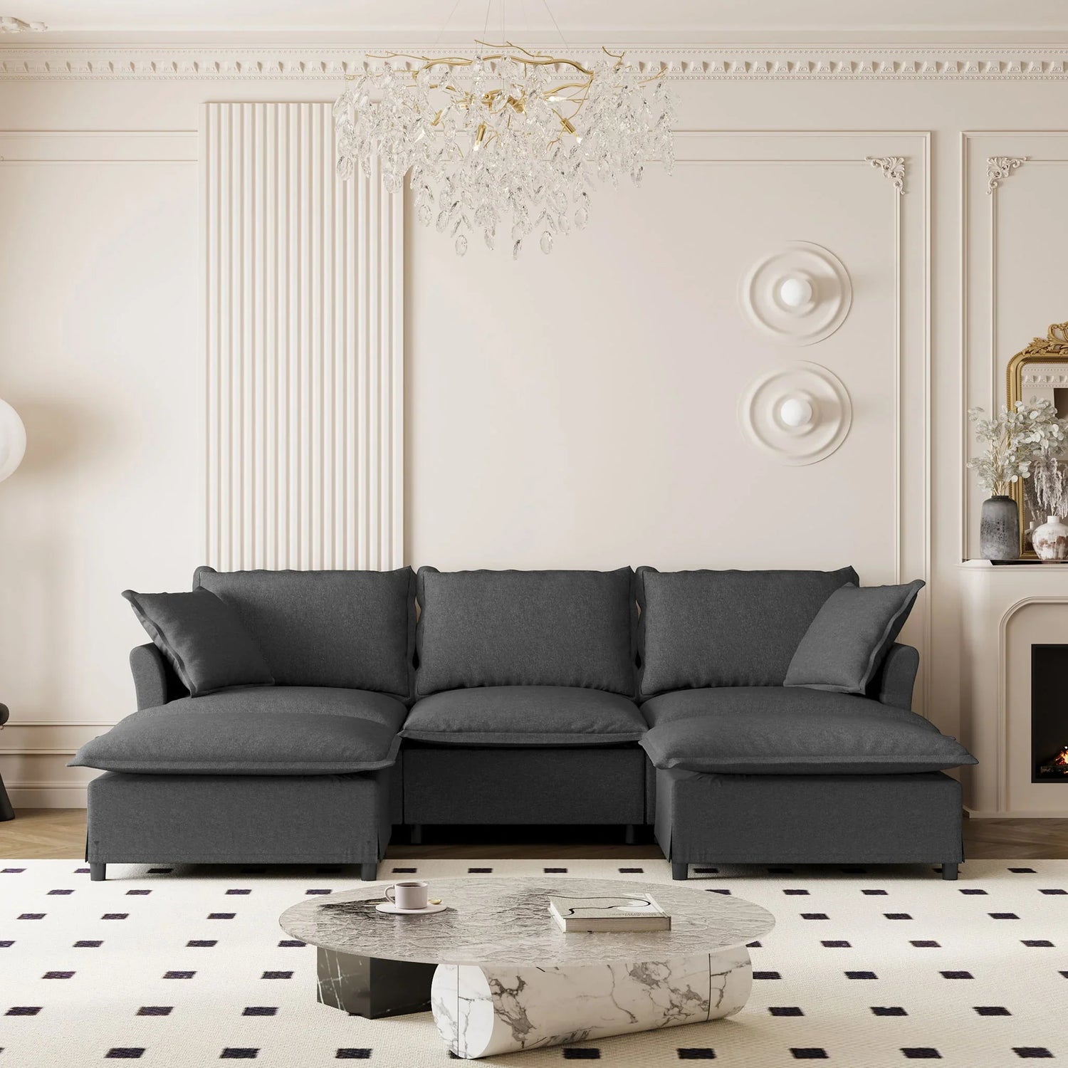 Sectional Sofa With Ottoman U Shaped Cloud Sleeper Couch Set With Pillows, Free Combination 5 Seat Modular Upholstered - Gray