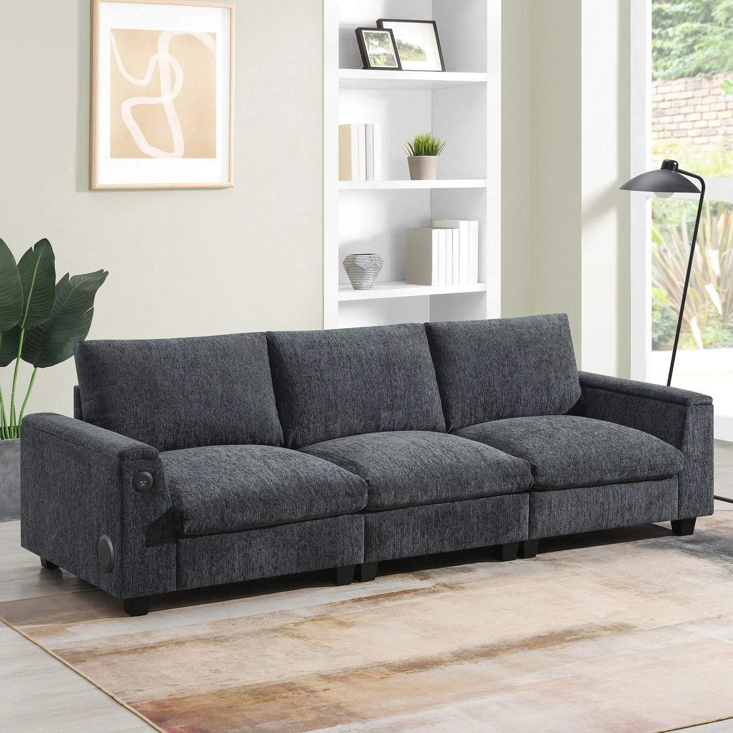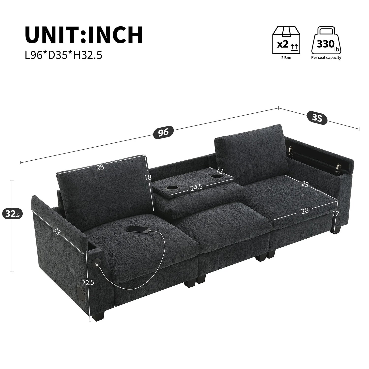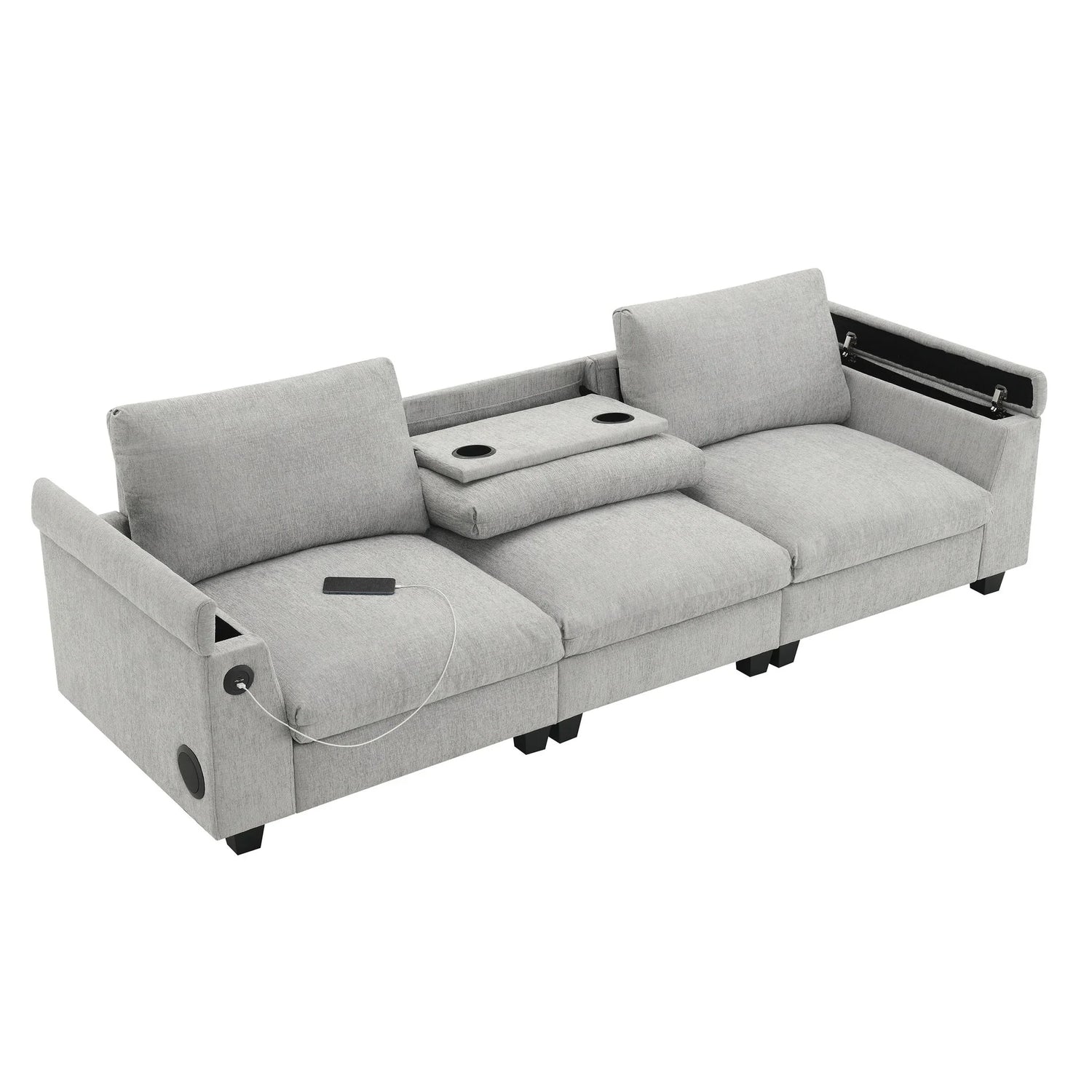- USB Charging: Featuring USB ports, the sofa offers convenient device charging, allowing you to power your phone, tablet, or e-reader without leaving your seat. This feature caters to tech-savvy users, providing easy access to power without additional cables.