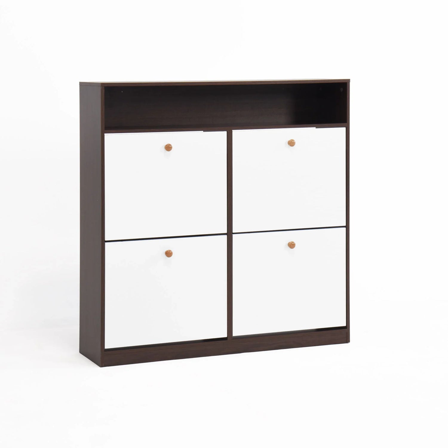 Modern Freestanding Shoe Storage Cabinet With 4 Flip Drawers - Walnut