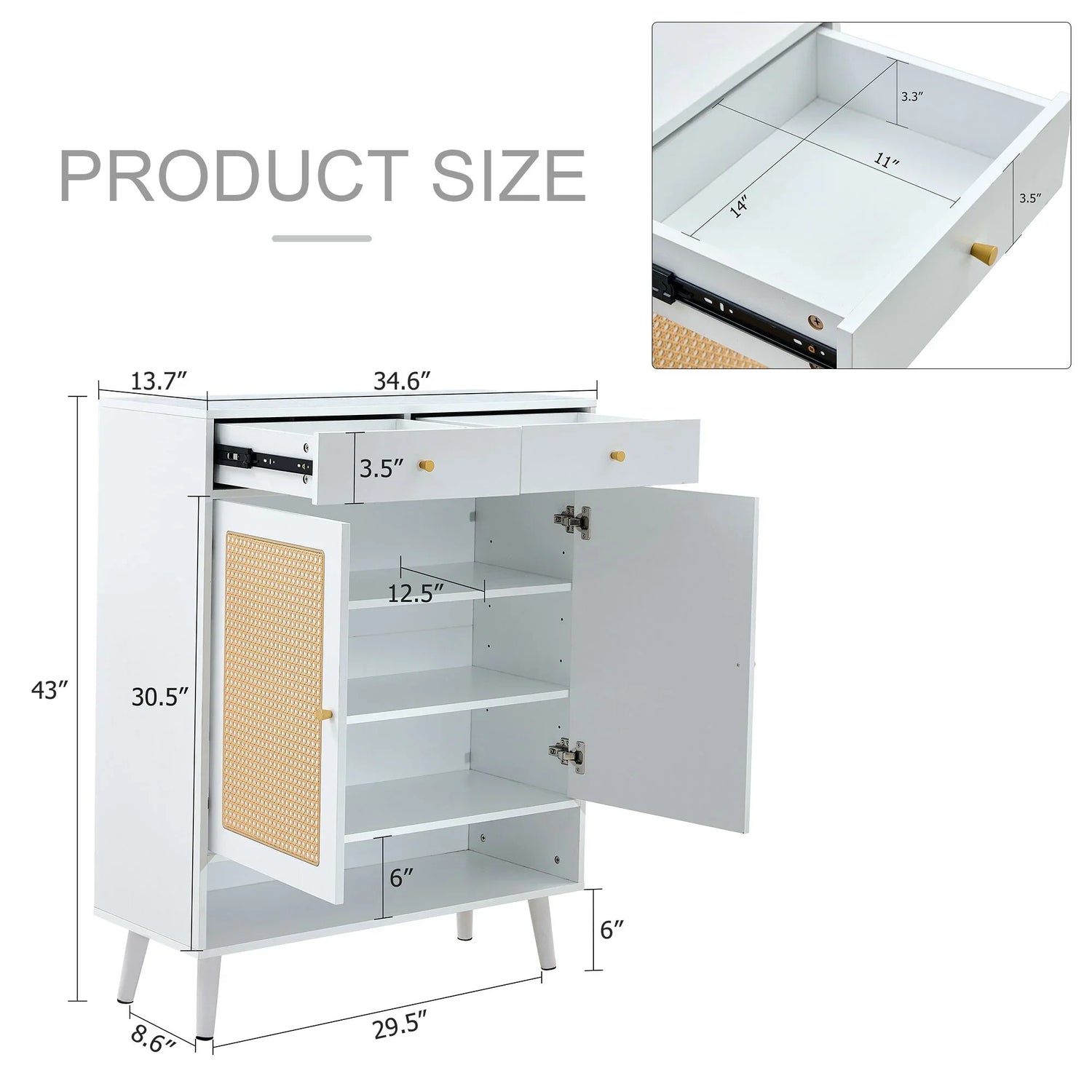 Modern Minimalist Rattan Shoe Cabinet, Elegant Storage Solution - White