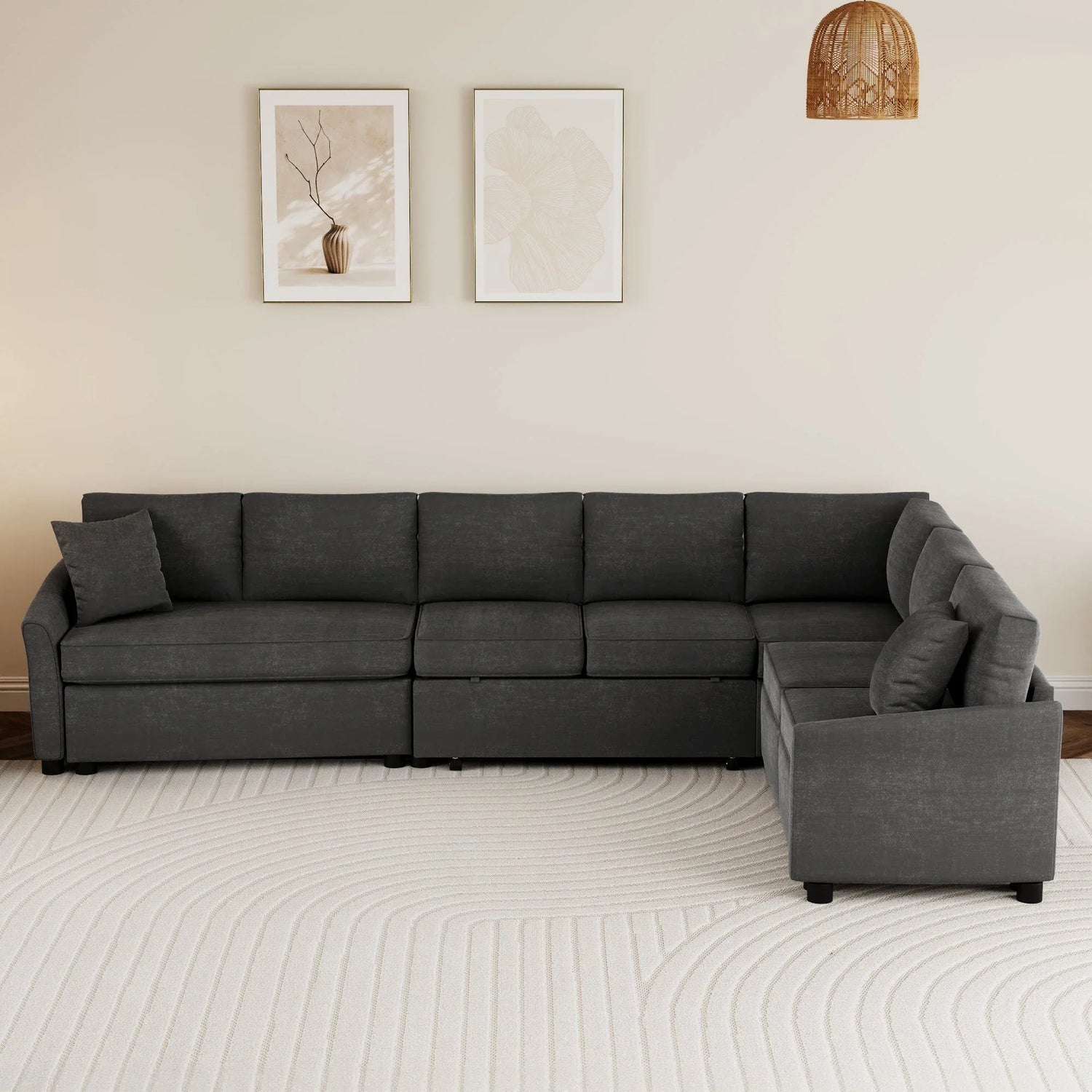 - Versatile pull-out sofa bed: Easily converts into a bed, offering a comfortable sleeping solution for guests with a pull-out and lift bed frame.