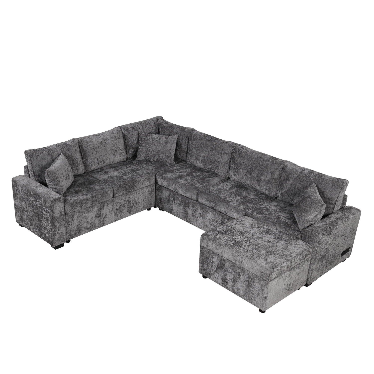 Sleeper Sectional With a Storage Ottoman, Three Pillows And Charging Devices For Living Room