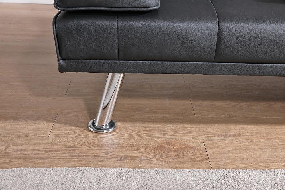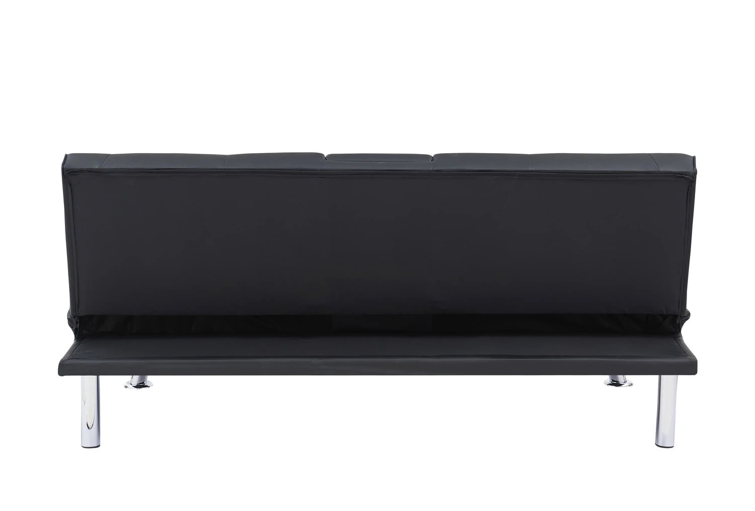 Black Leather Multifunctional Double Folding Sofa Bed for Office with Coffee Table