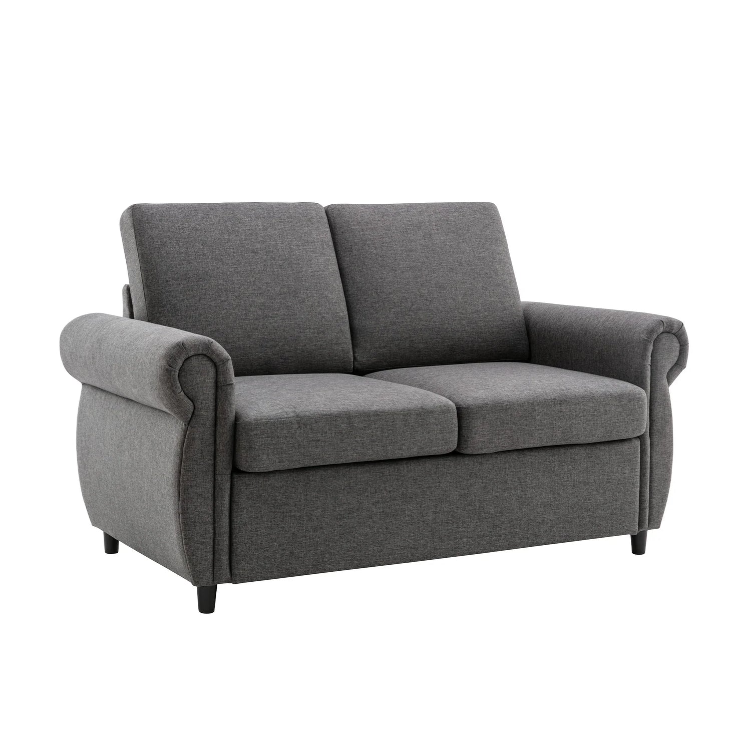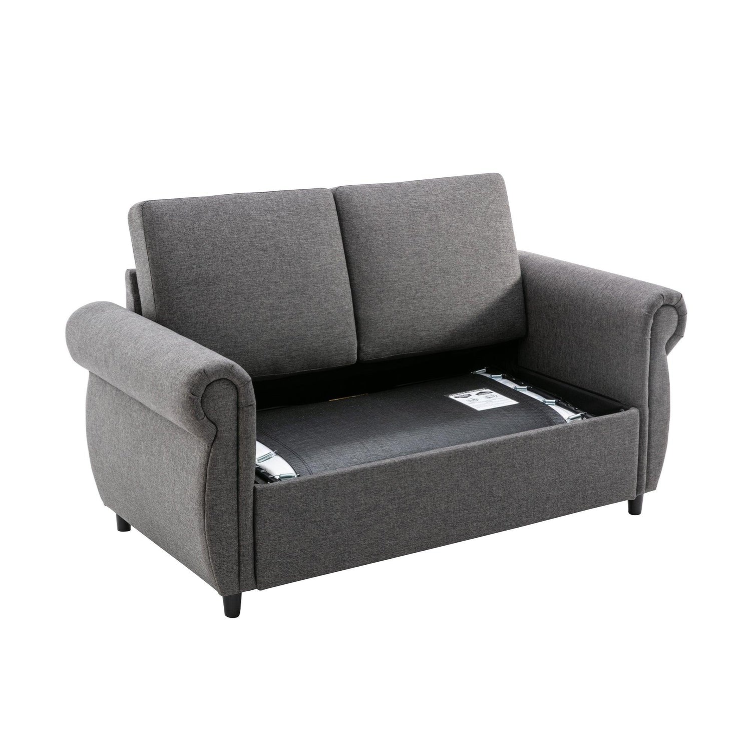 This compact pull-out sleeper sofa is designed for city dwellers, studio apartments, guest rooms and anyone who needs a comfortable daytime sofa that converts quickly to a twin-size bed at night. Upholstered in a medium‑tone grey linen-look fabric with a supportive foam fill, it balances clean, modern lines with everyday comfort and a small‑footprint profile.