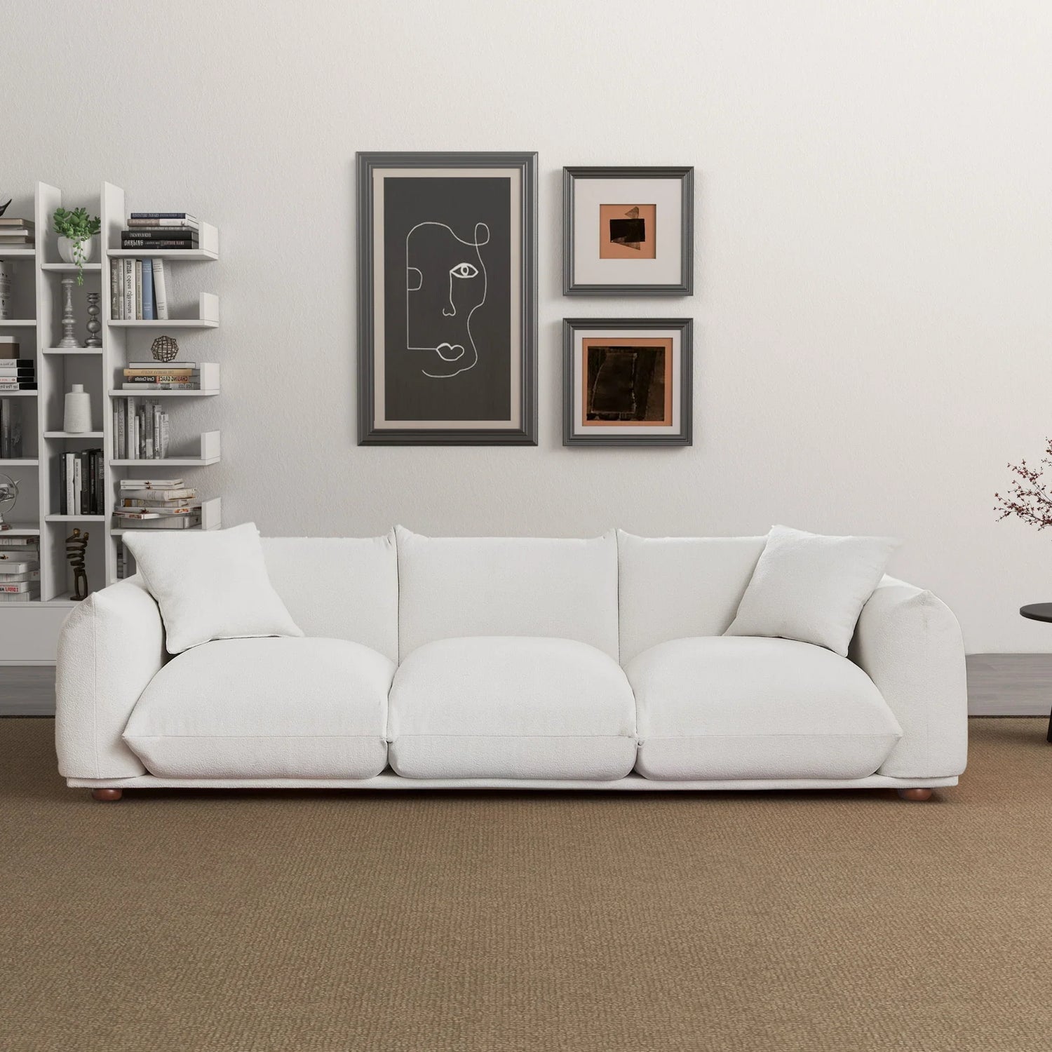 - Stylish and Versatile: The Kely 100'' Cream Boucle Upholstered Sofa is designed to be a chic and adaptable addition to any living space, including living rooms, game rooms, or entertainment areas.