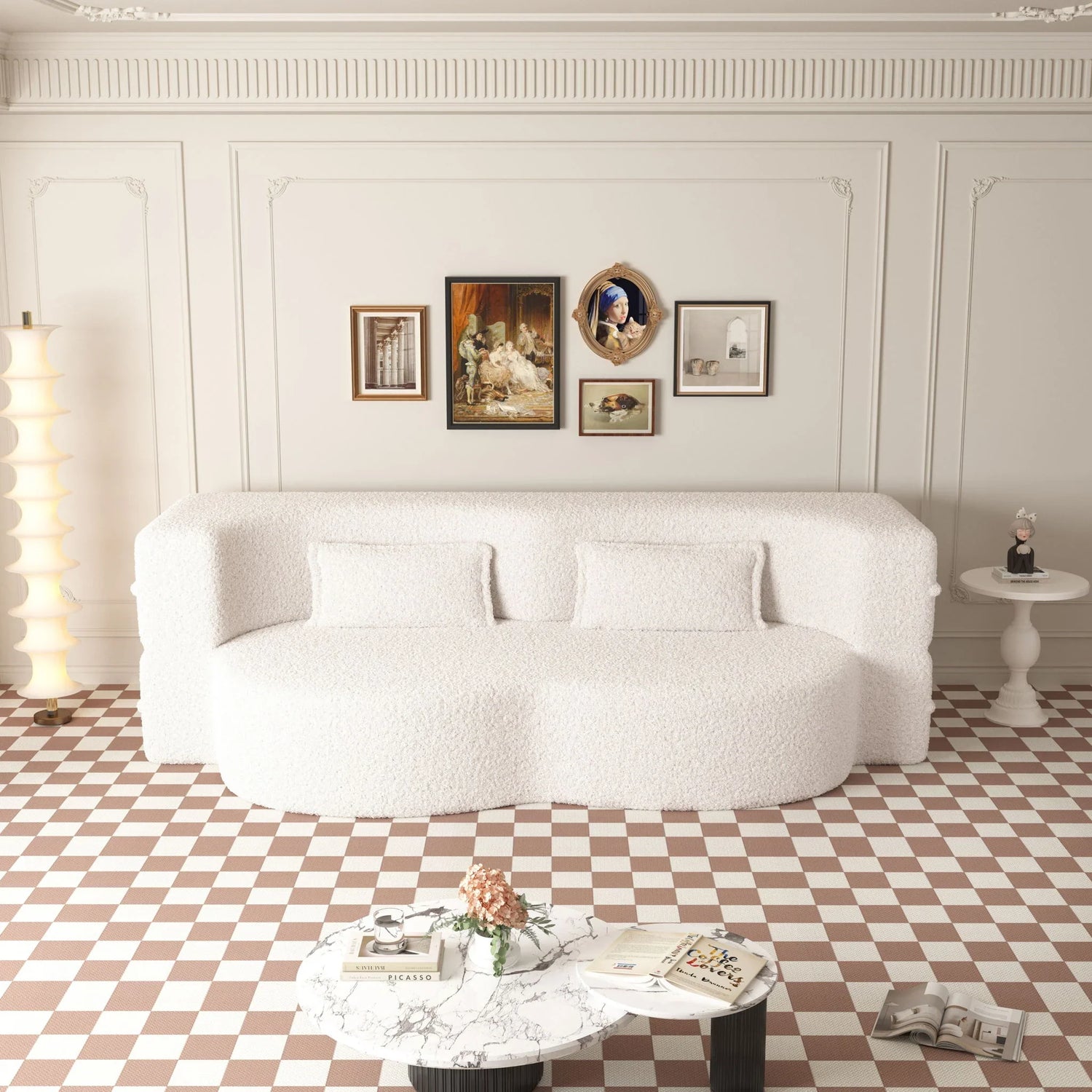 • Teddy Fabric:This sofa is made of soft and breathable teddy fabric,with a sponge structure support are both comfortable and durable.