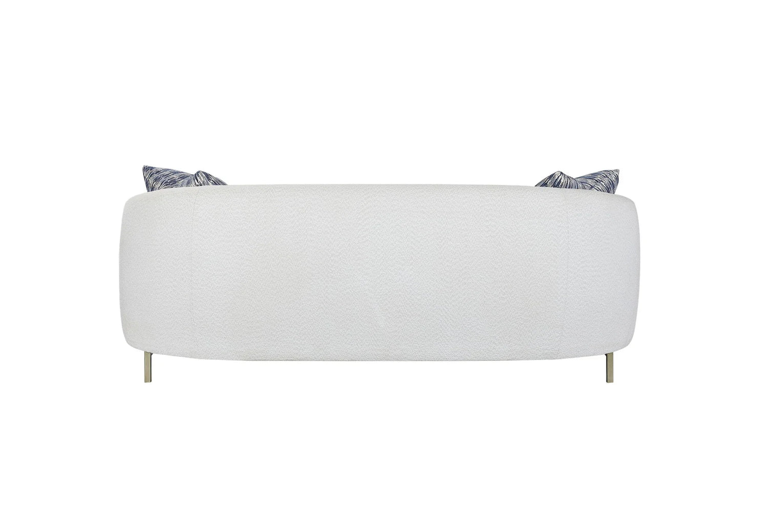 This rounded, white sofa is for someone who values modern lines and everyday comfort—ideal for a contemporary living room, apartment lounge, or a refined home office seating area. Its soft, curved silhouette and low profile create an inviting focal point that reads fresh and minimal while still feeling distinctly cozy.