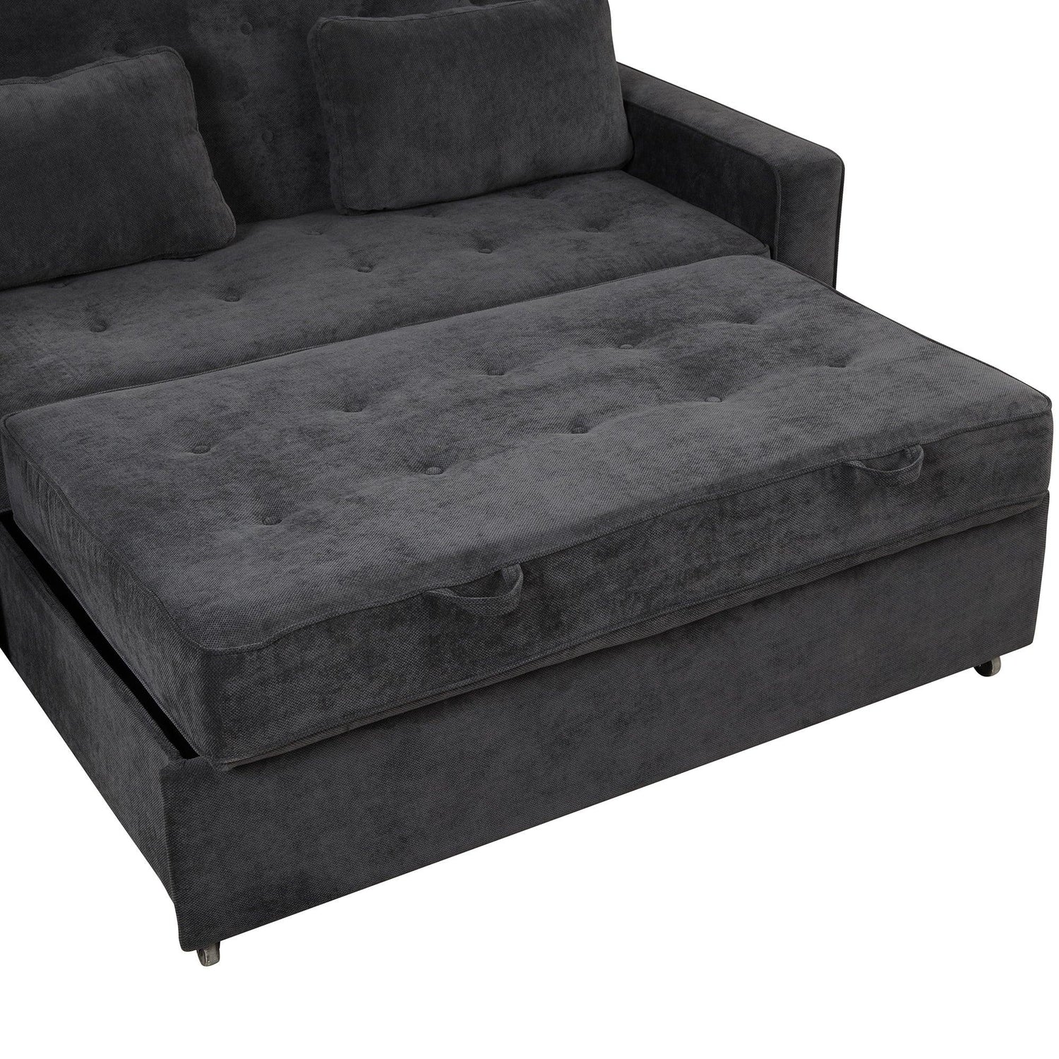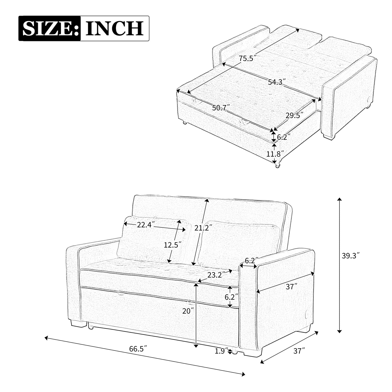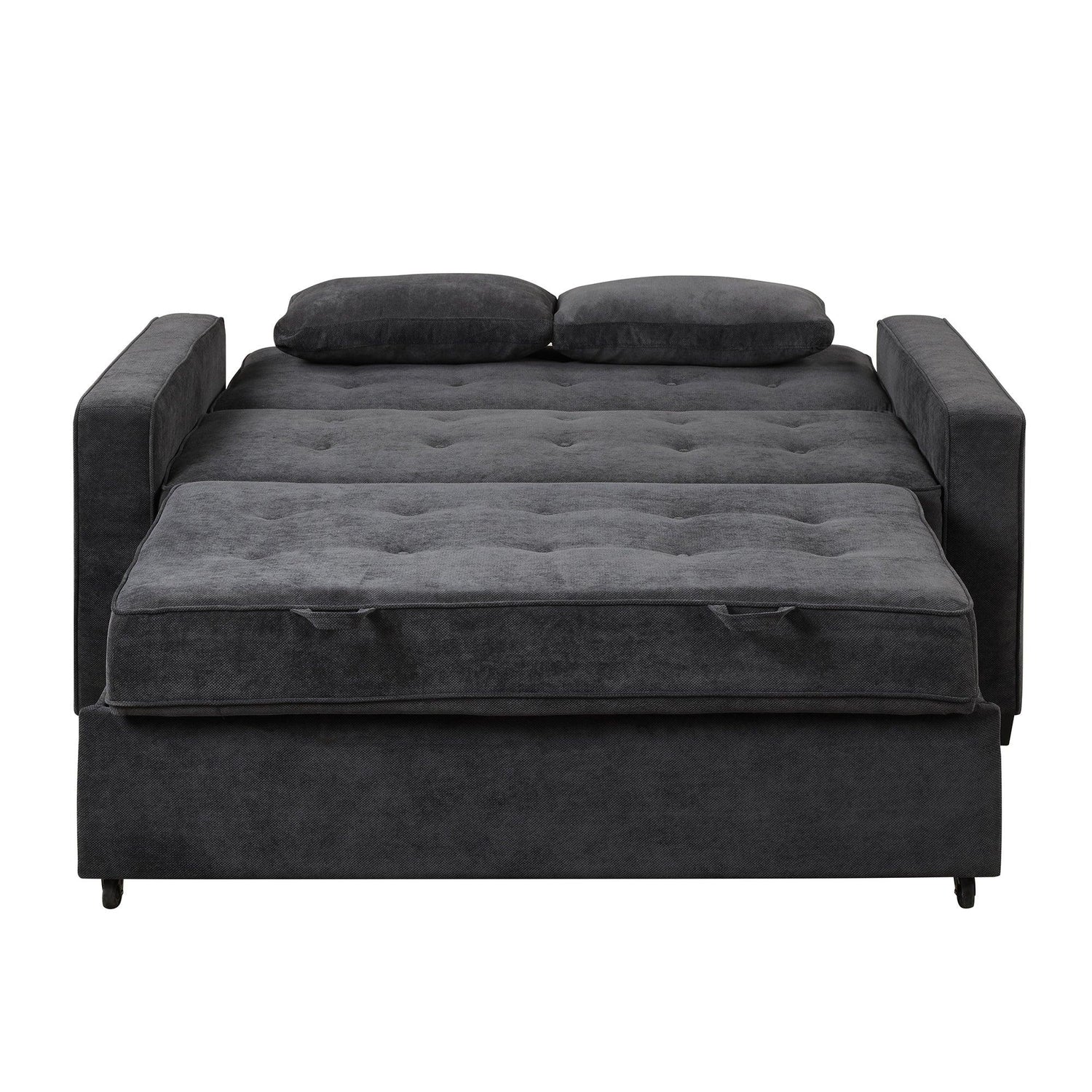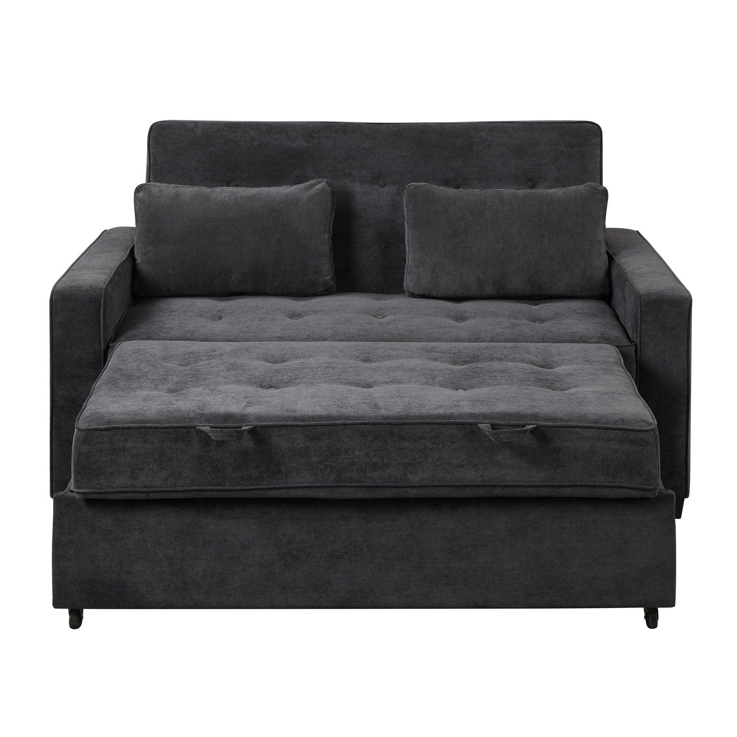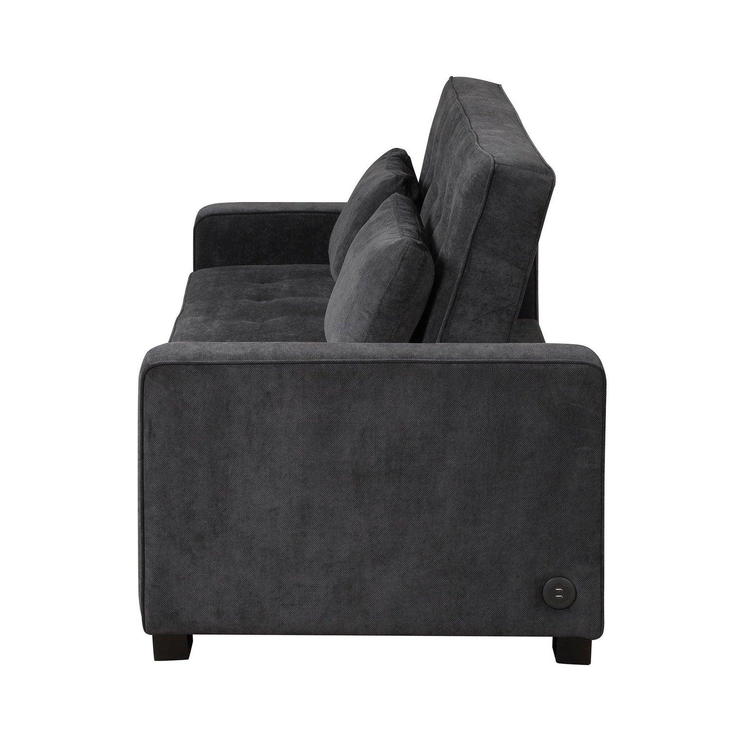 66.5" Upholstered Loveseat With Pull Out Bed, Two Throw Pillows, Dual USB Charging Port and Adjustable Backrest - Black is backordered and will ship as soon as it is back in stock.